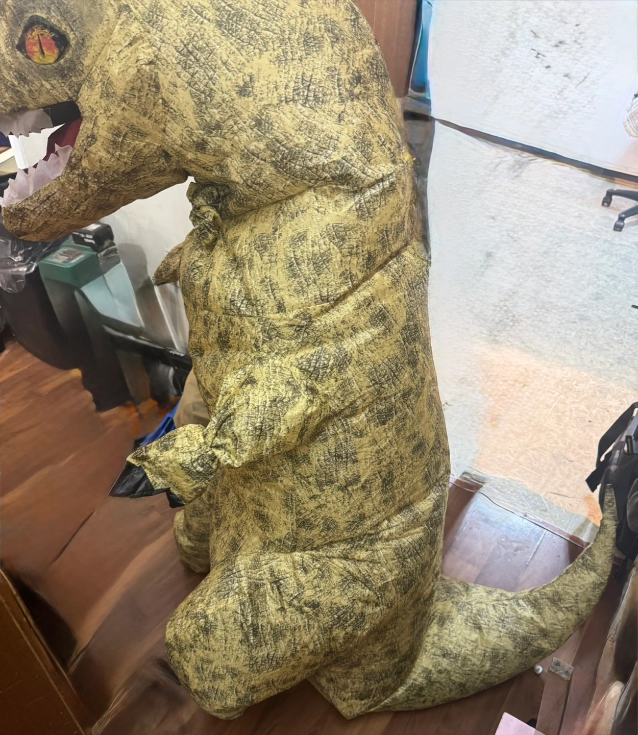 Get ready to stomp around in this fun Morph Costumes Giant T-Rex inflatable costume!