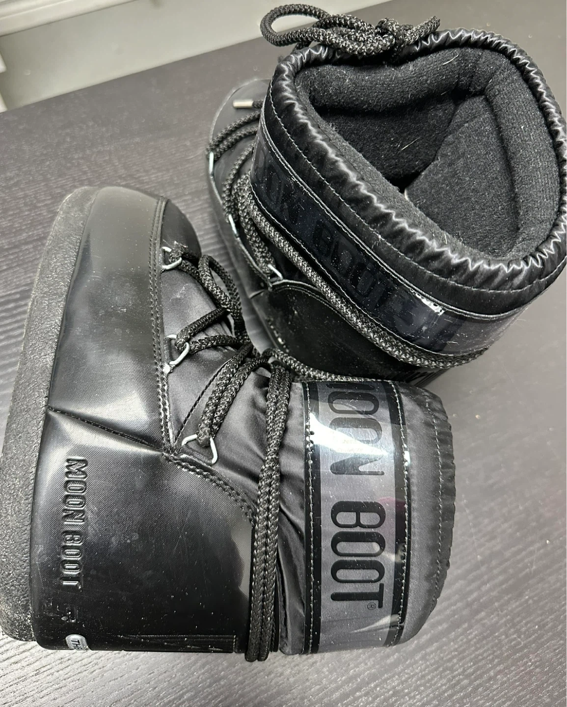 Selling a pair of Moon Boots in black nylon! They are in great condition and ready for the snow. The size is US 5/6.