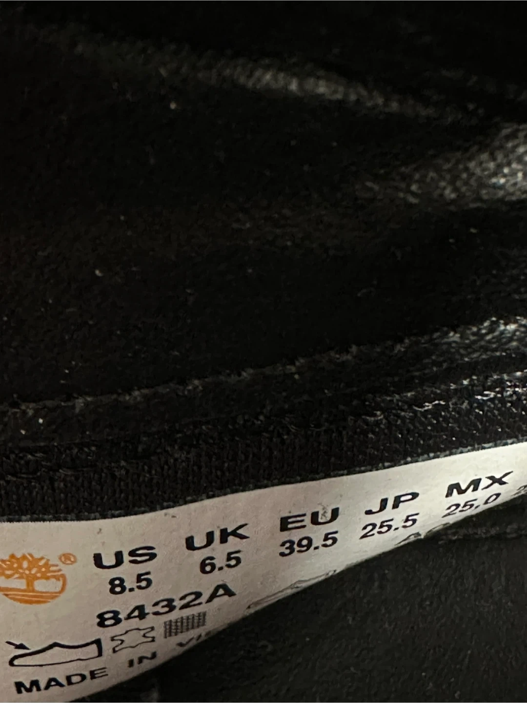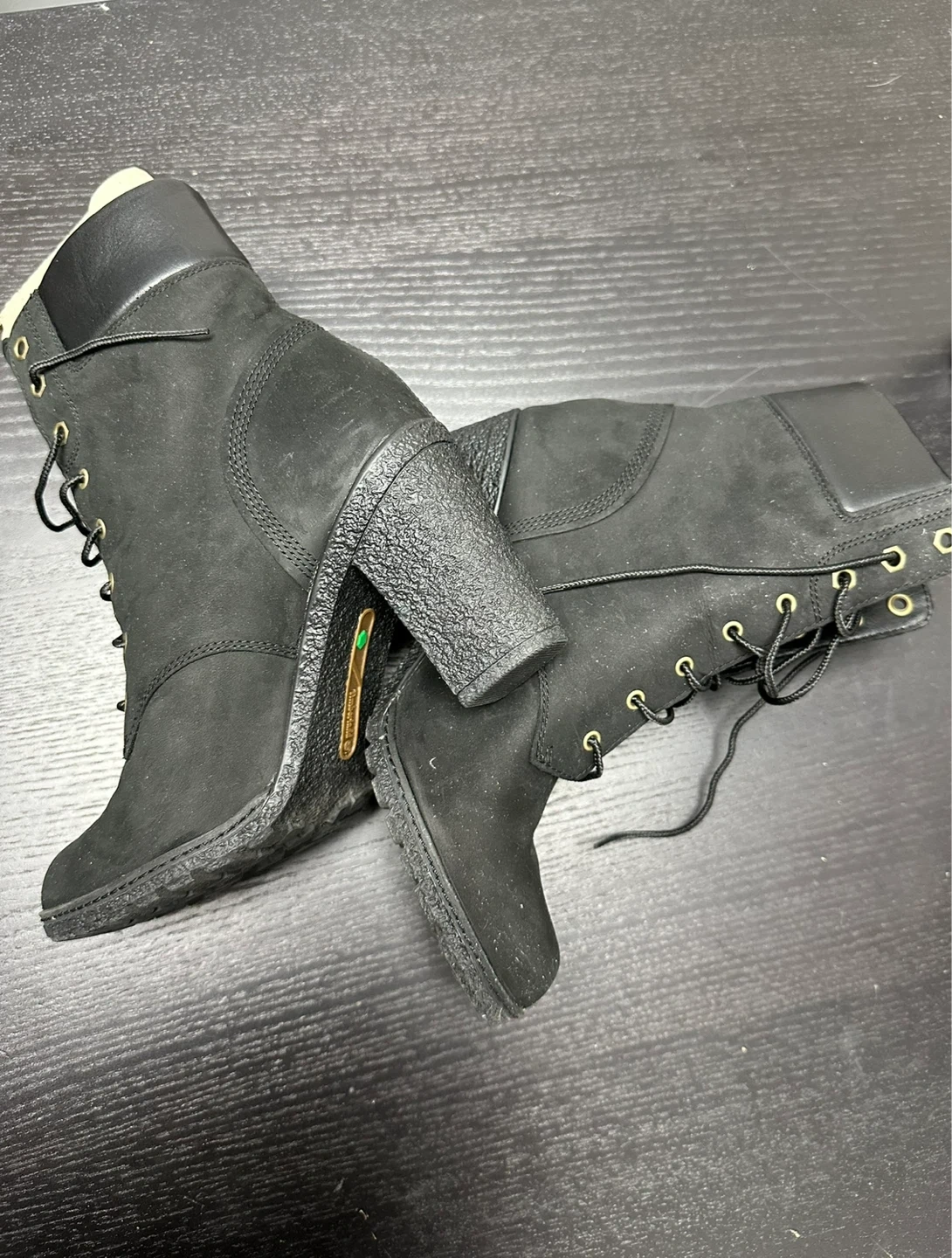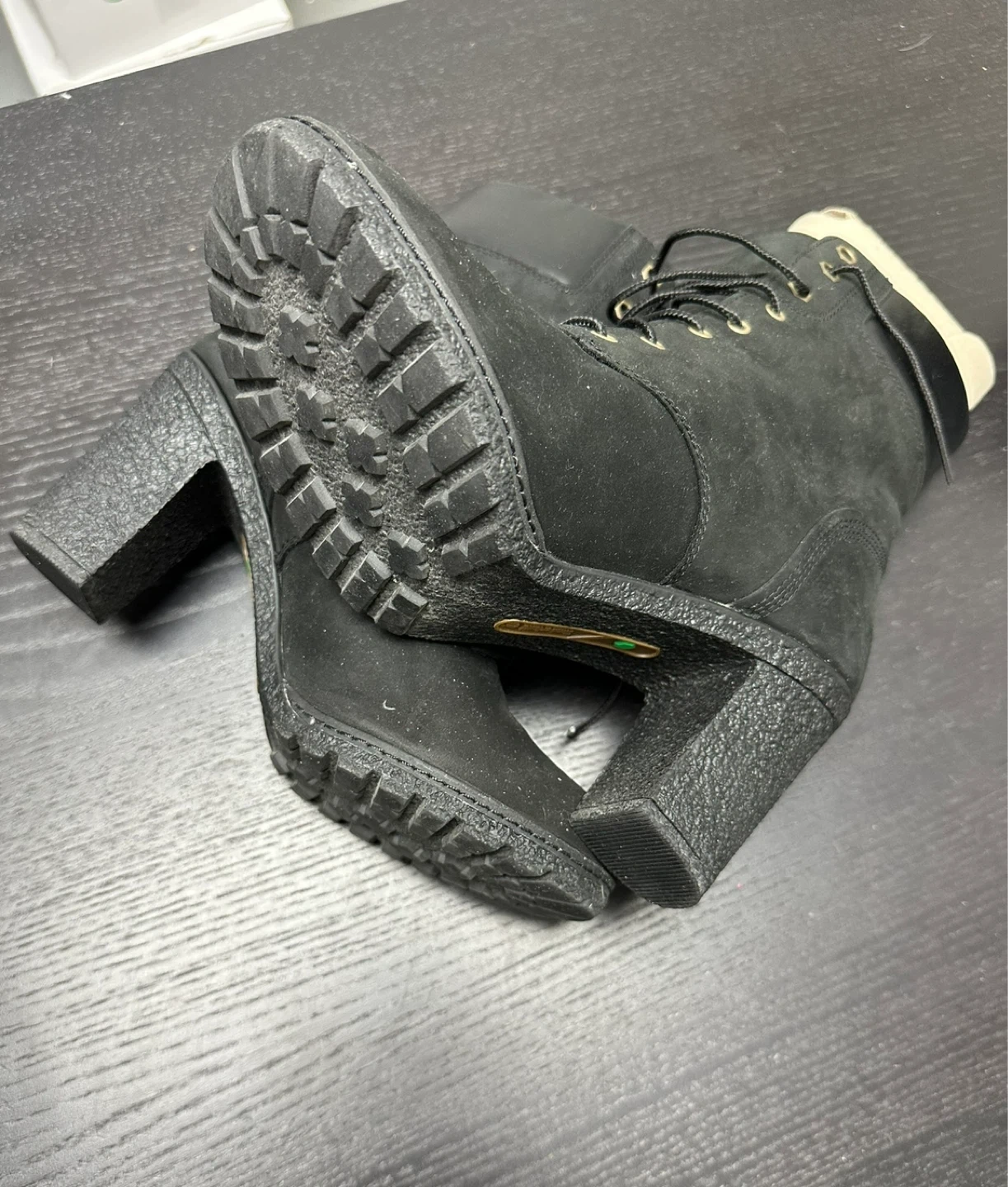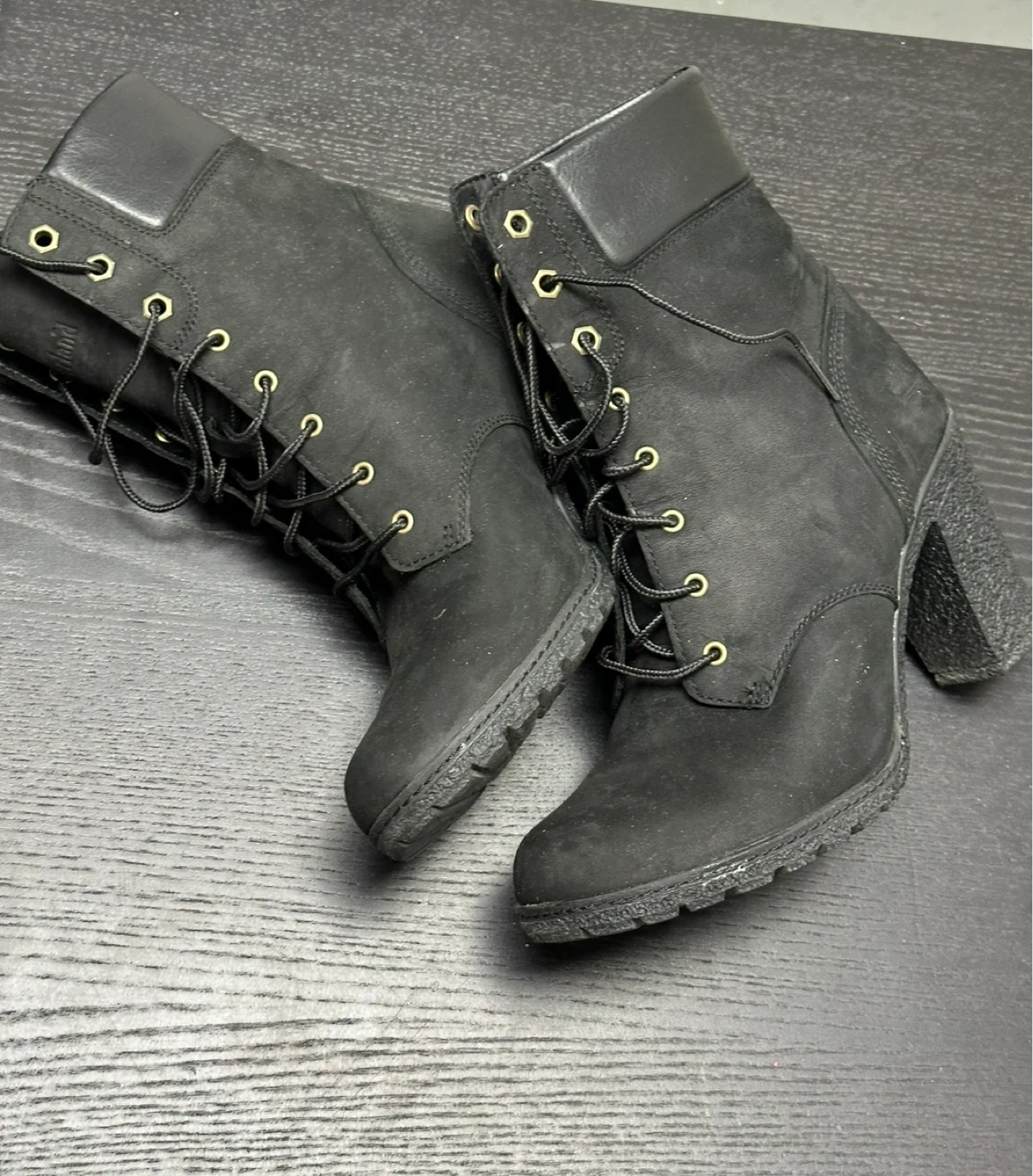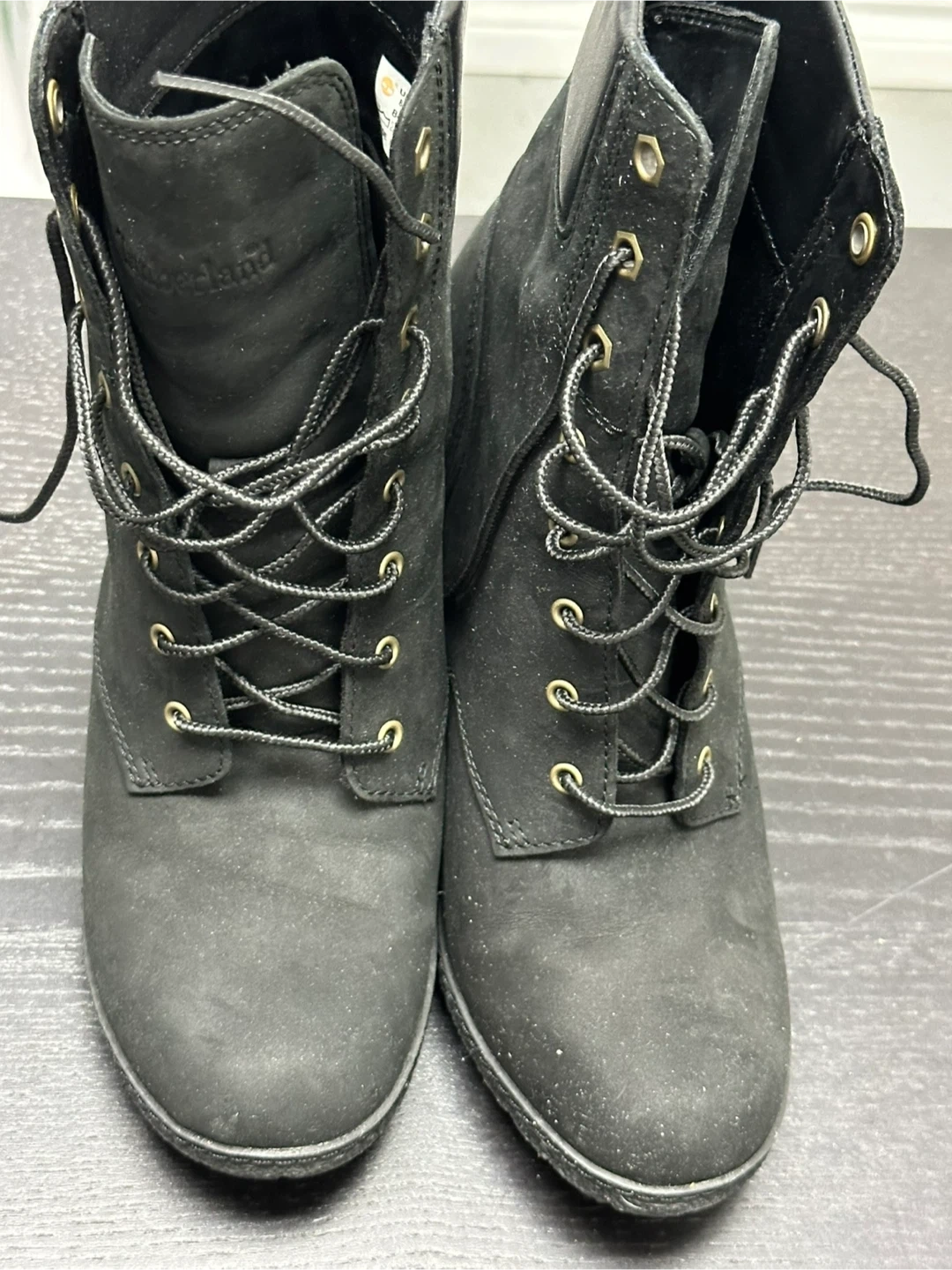 Selling a pair of Timberland heeled boots in black. They're a women's size 8.5 US. Great for adding a bit of edge to any outfit!
