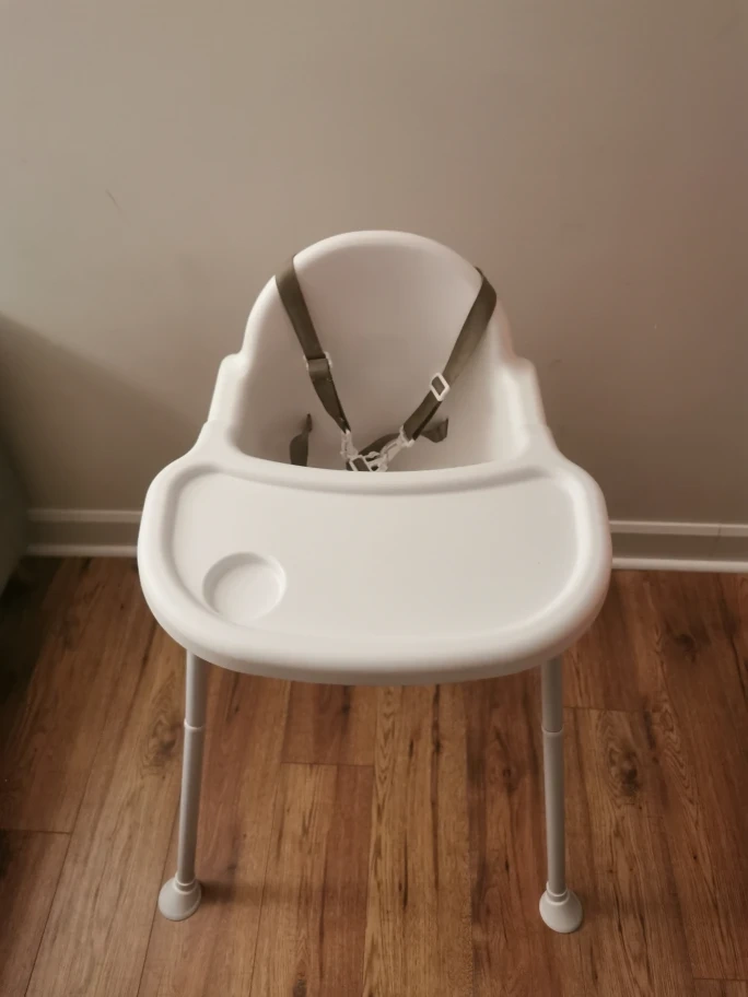 Selling a gently used IKEA Antilop high chair in white. It's in great condition and perfect for feeding time! It comes with the safety harness to keep your little one secure. Easy to clean and a great space saver too