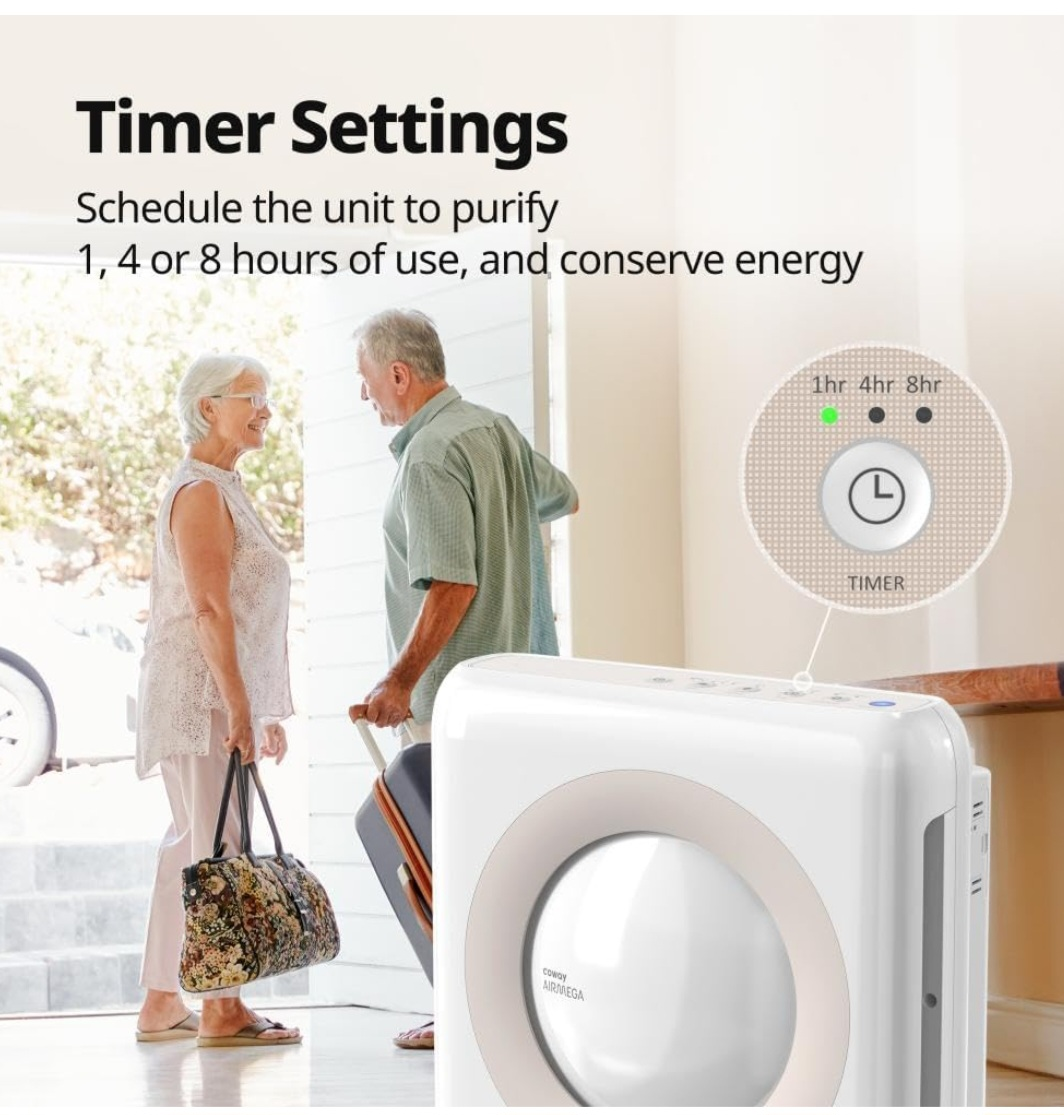 Looking to improve your air quality? I'm selling an Airmega Mighty AP-1512HH(W) air purifier. It features 3-stage filtration to trap 99.999% of nano-sized particles down to 0.01 microns. It's designed for rooms up to 361ft² and has an air quality indicator and timer settings.