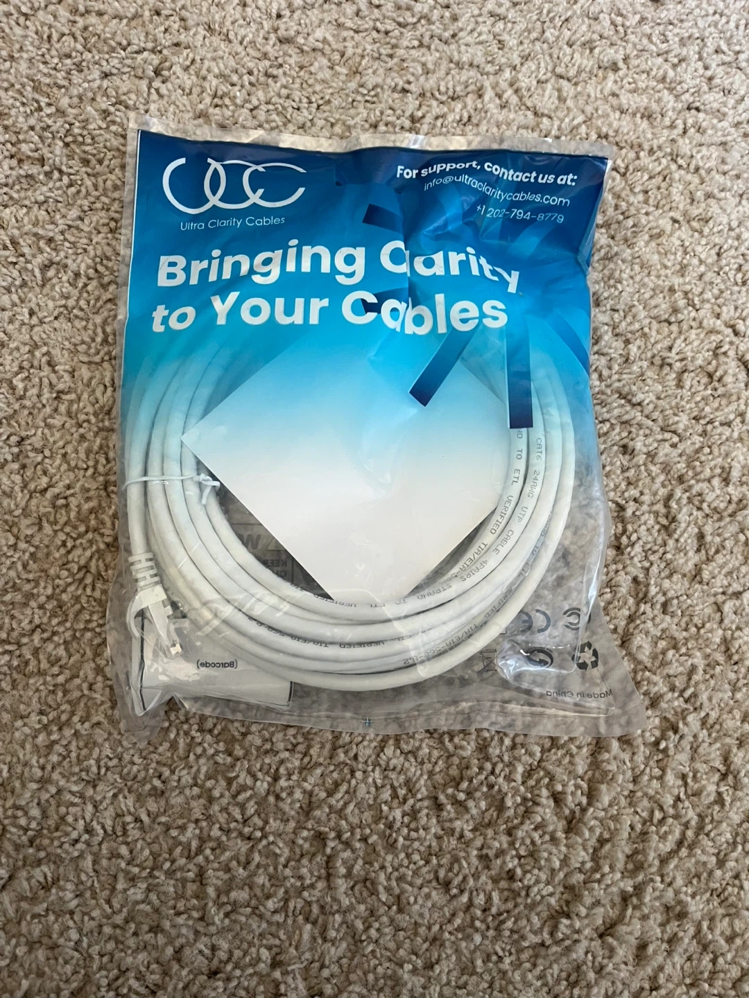 Selling a new Ultra Clarity Cables CAT6 24AWG UTP 20 ft cable, still in its original packaging. It's a 4PR/4PRS STRAND cable verified to ETL standards. Bringing clarity to your cables!