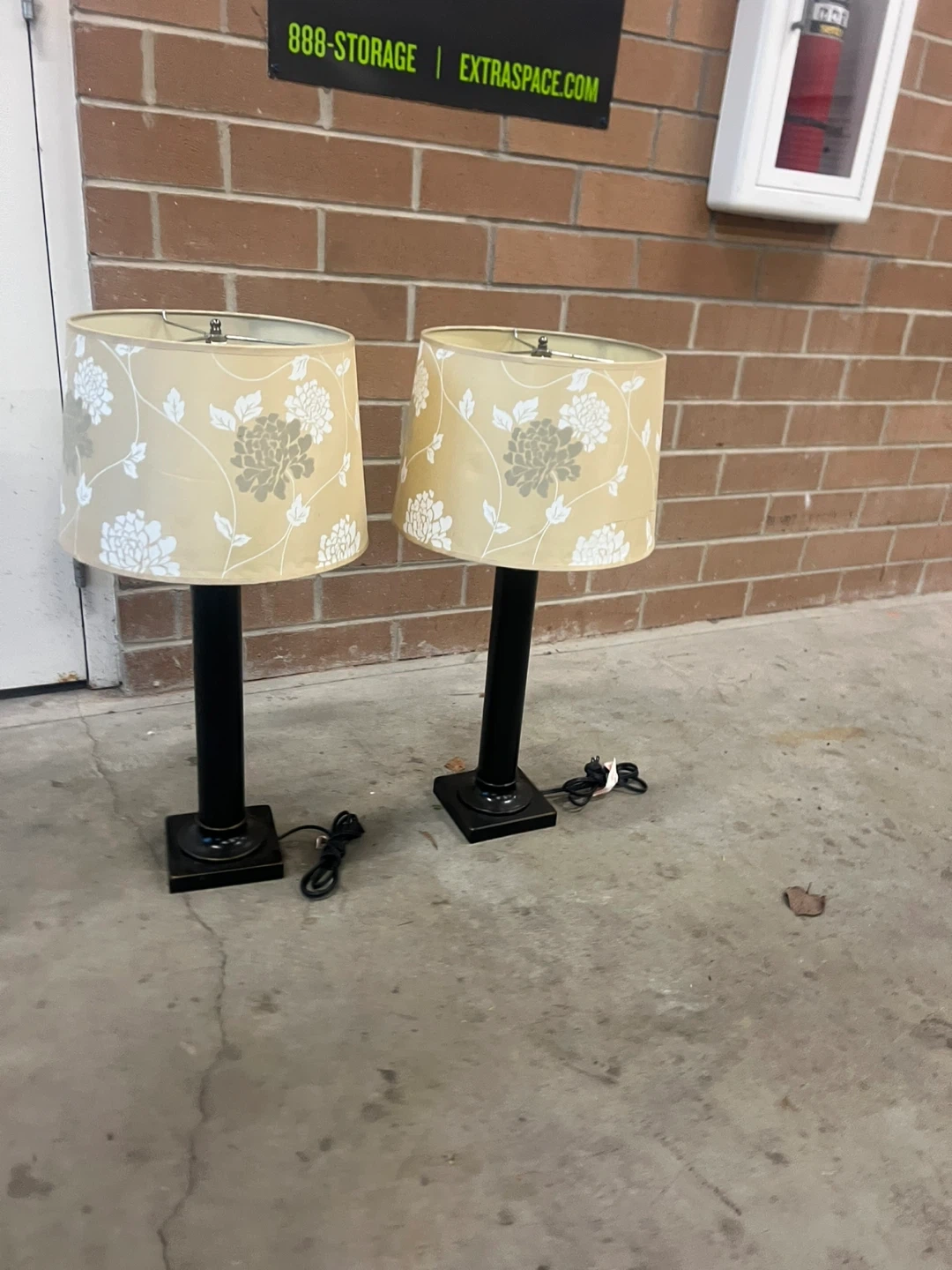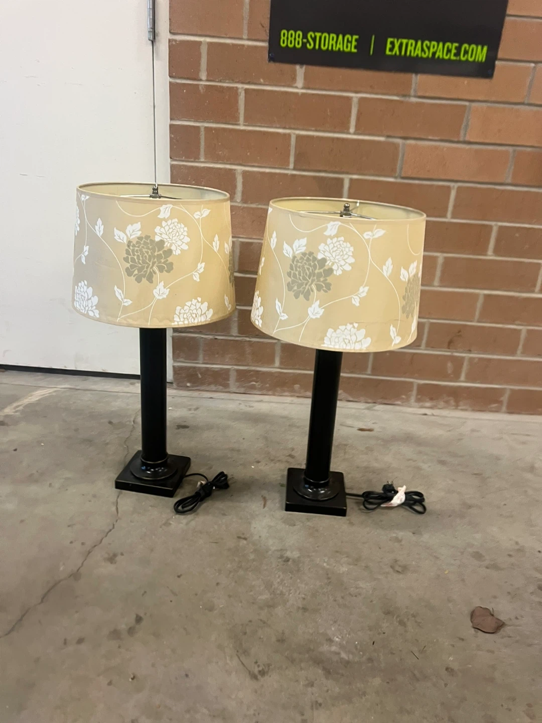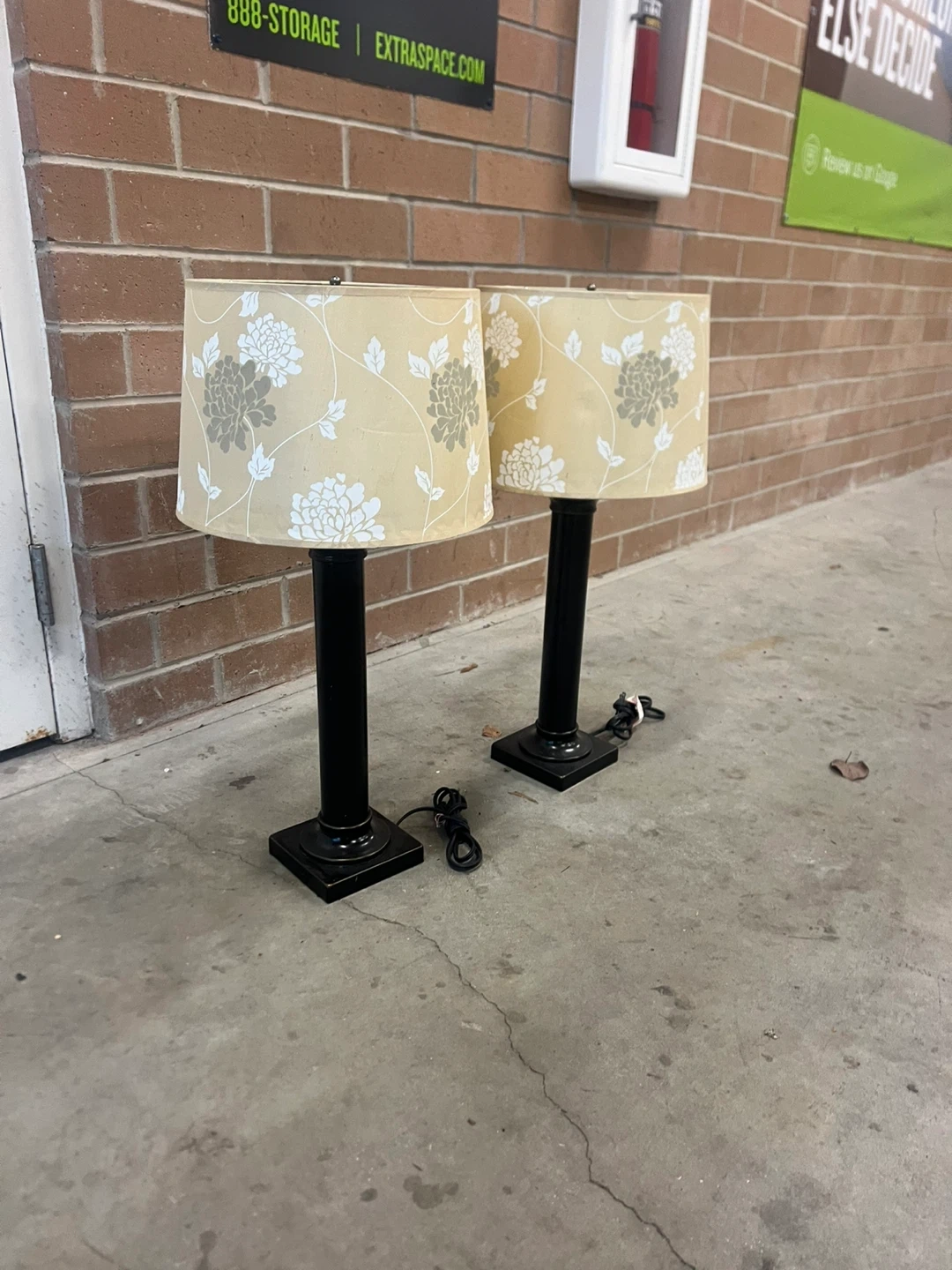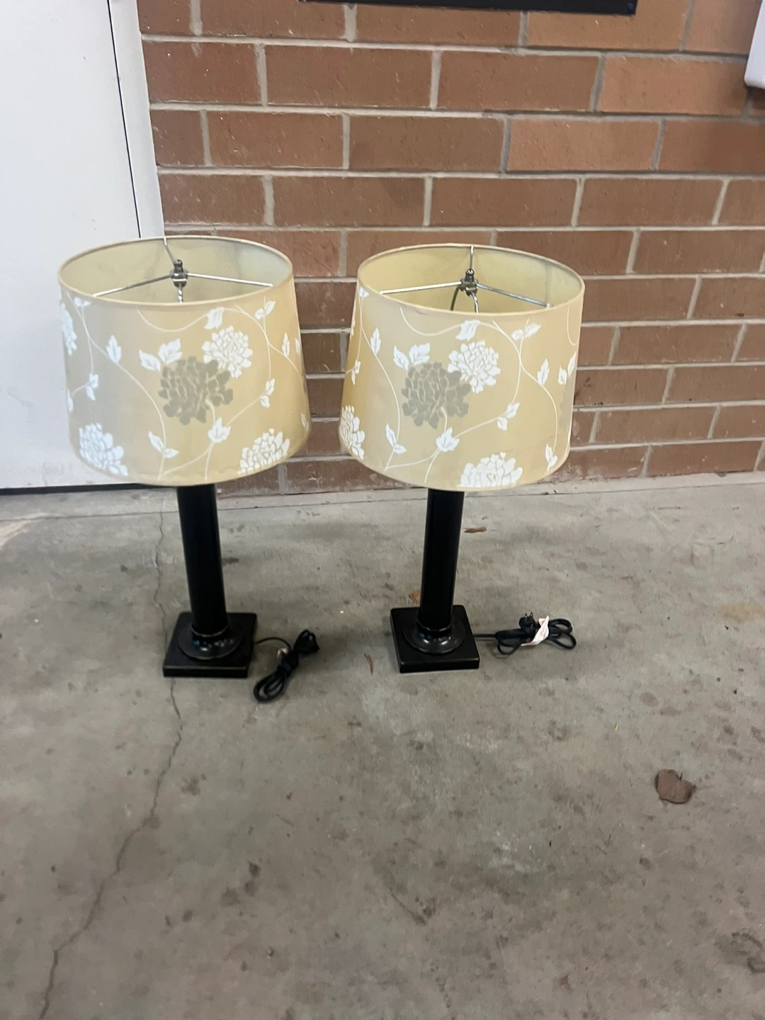 Selling a set of two table lamps with a lovely floral pattern on the shades.