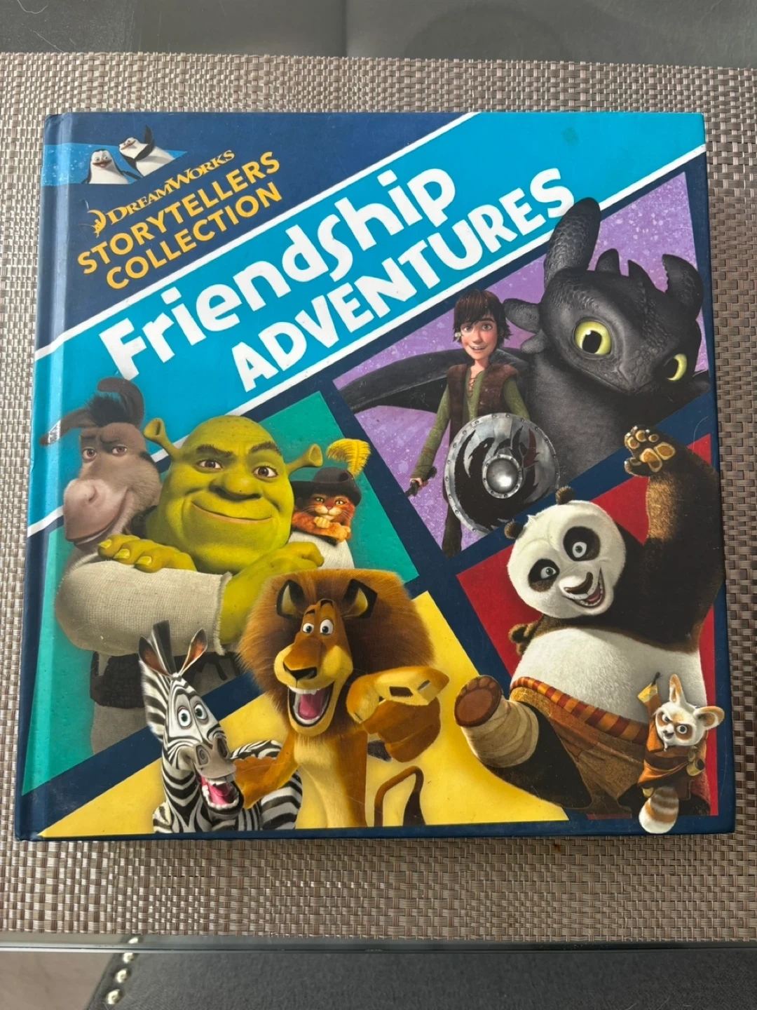 Selling a Dreamworks Storytellers Collection book titled Friendship Adventures! It's a fun collection of stories featuring characters from Shrek, Madagascar, How to Train Your Dragon, and Kung Fu Panda