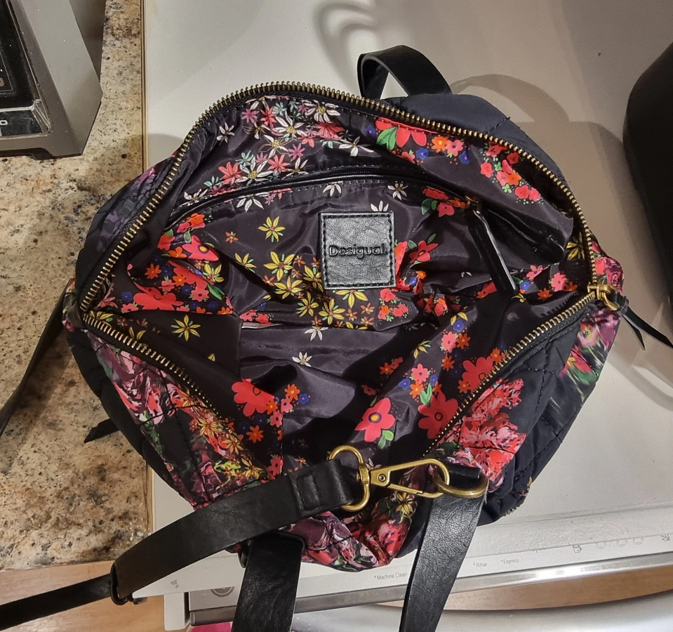 Selling a lovely Desigual handbag! It's black with a beautiful floral quilted design.