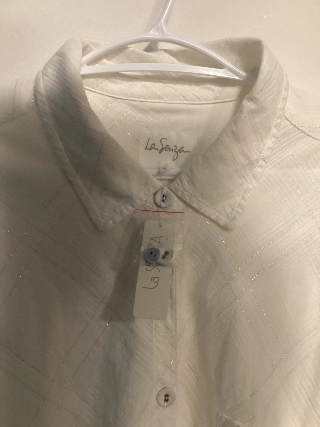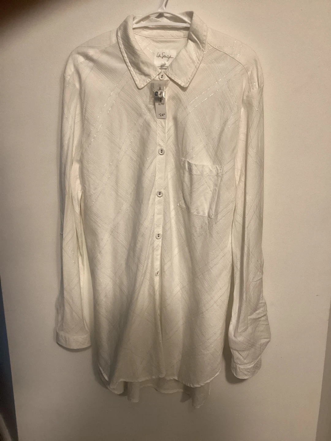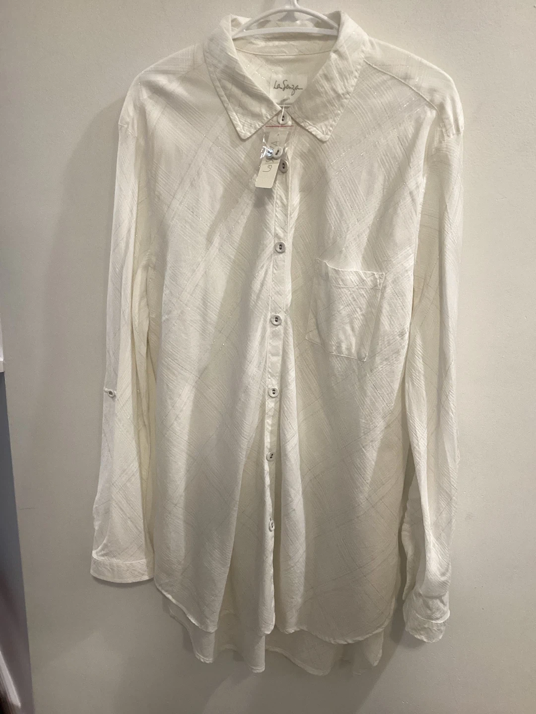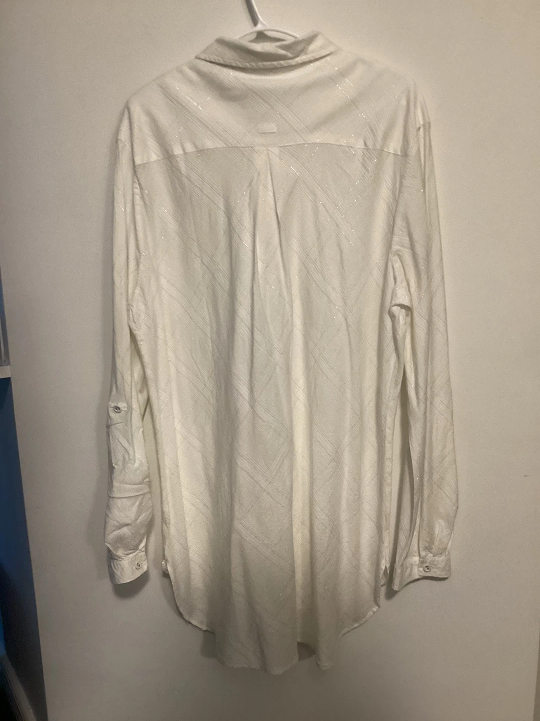 Woman’s Long White blouse / Bathing suit Cover up with silver thread