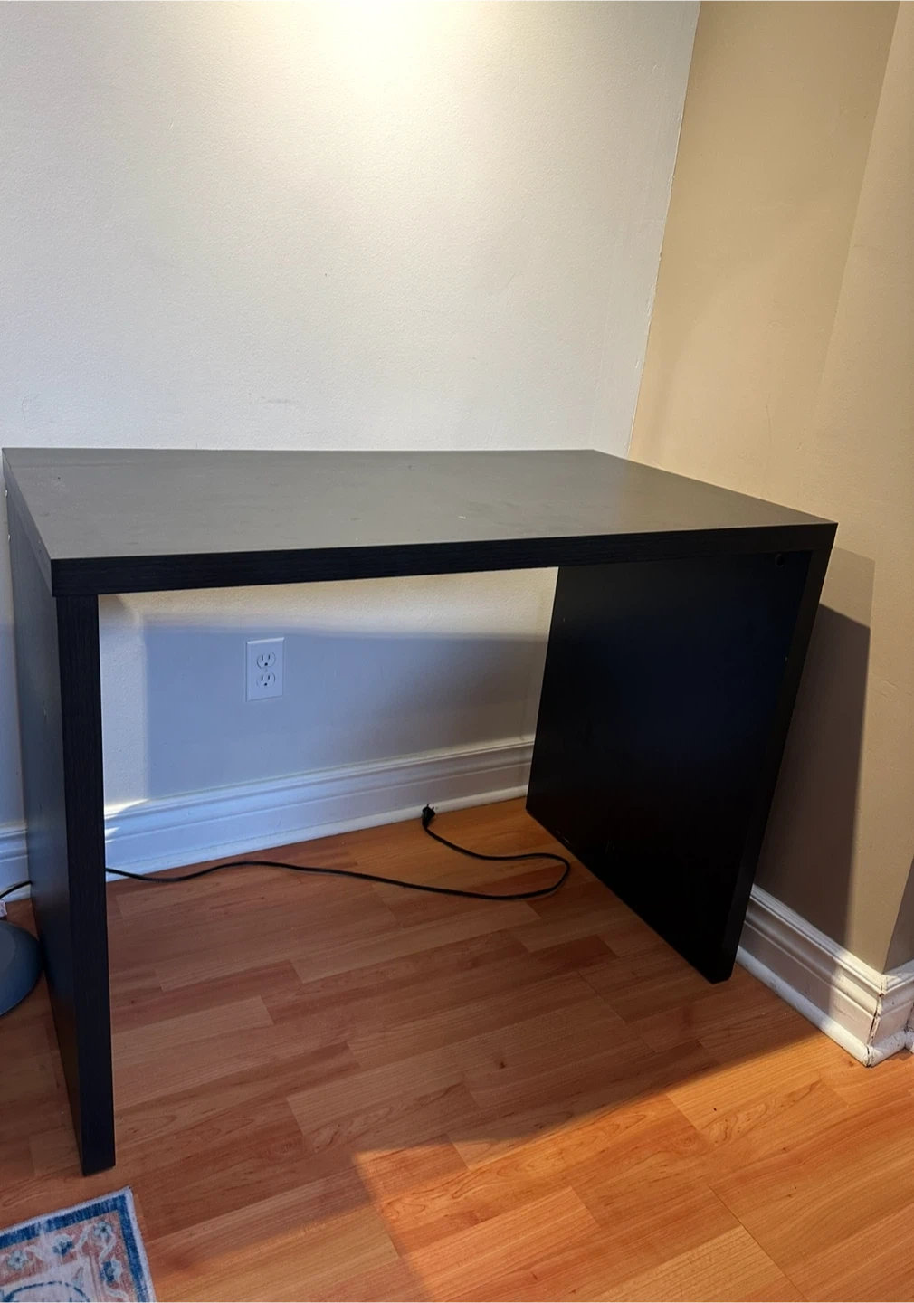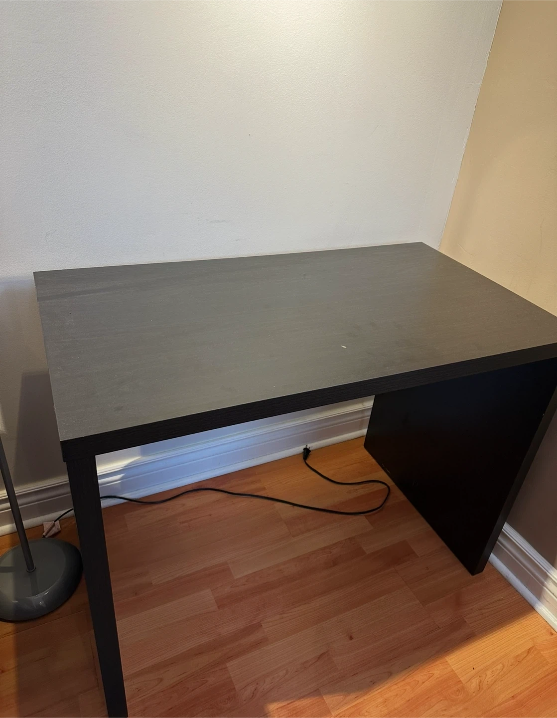 Selling a black desk in great condition! It's sturdy and perfect for a home office or study space. It has a simple, minimalist design that fits well in any room. It's a great deal for anyone looking for a functional and stylish desk