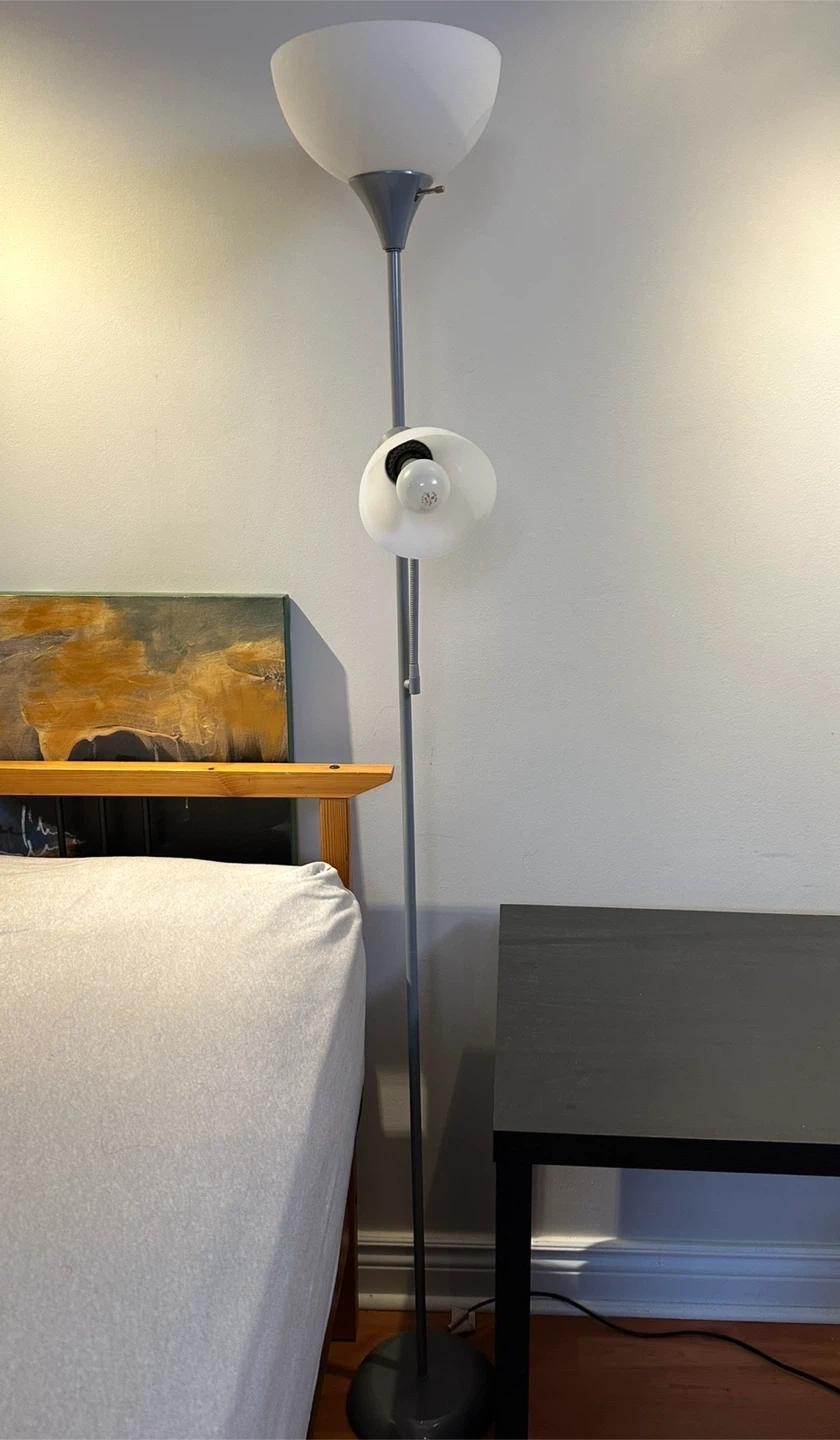 Selling a floor lamp with a main upward light and a smaller adjustable reading light. It's in great shape and perfect for adding some extra light to any room