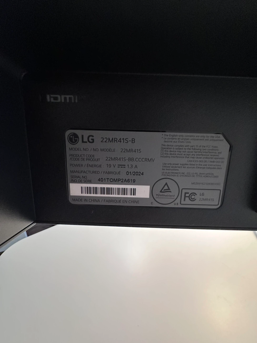 Selling an LG 22MR41S-B monitor in great condition! This 22-inch monitor is perfect for a home office or gaming setup. It has a sleek design and delivers clear visuals. The manufacturing date is January 2024.