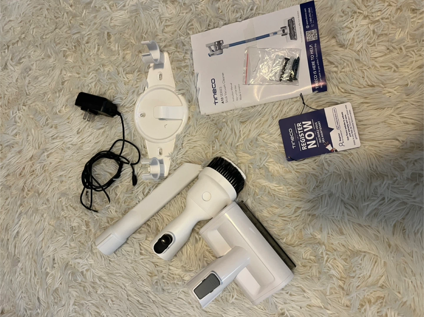 Selling a Tineco A10 Cordless Stick Vacuum Cleaner. It comes with all the attachments pictured, including the charger and manual.