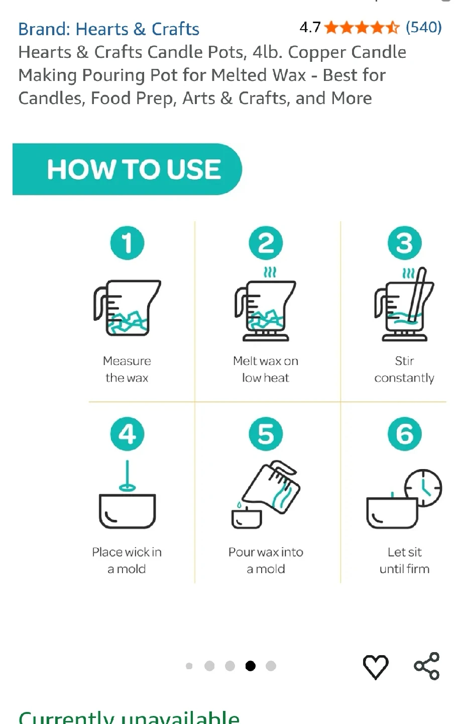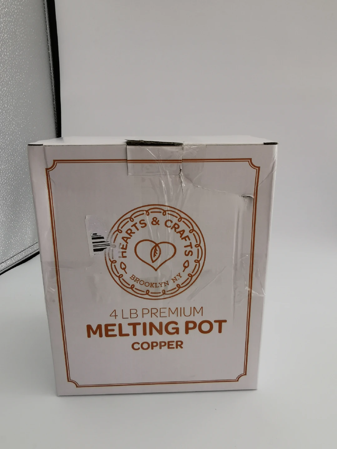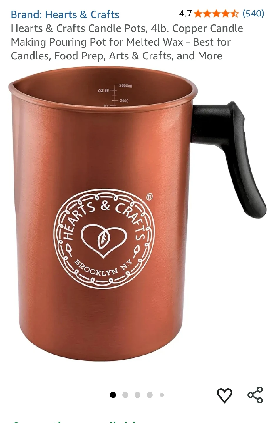 I'm selling a brand new 4lb copper candle making pouring pot by Hearts & Crafts, ideal for melting wax for candles, food prep, arts, and crafts.
