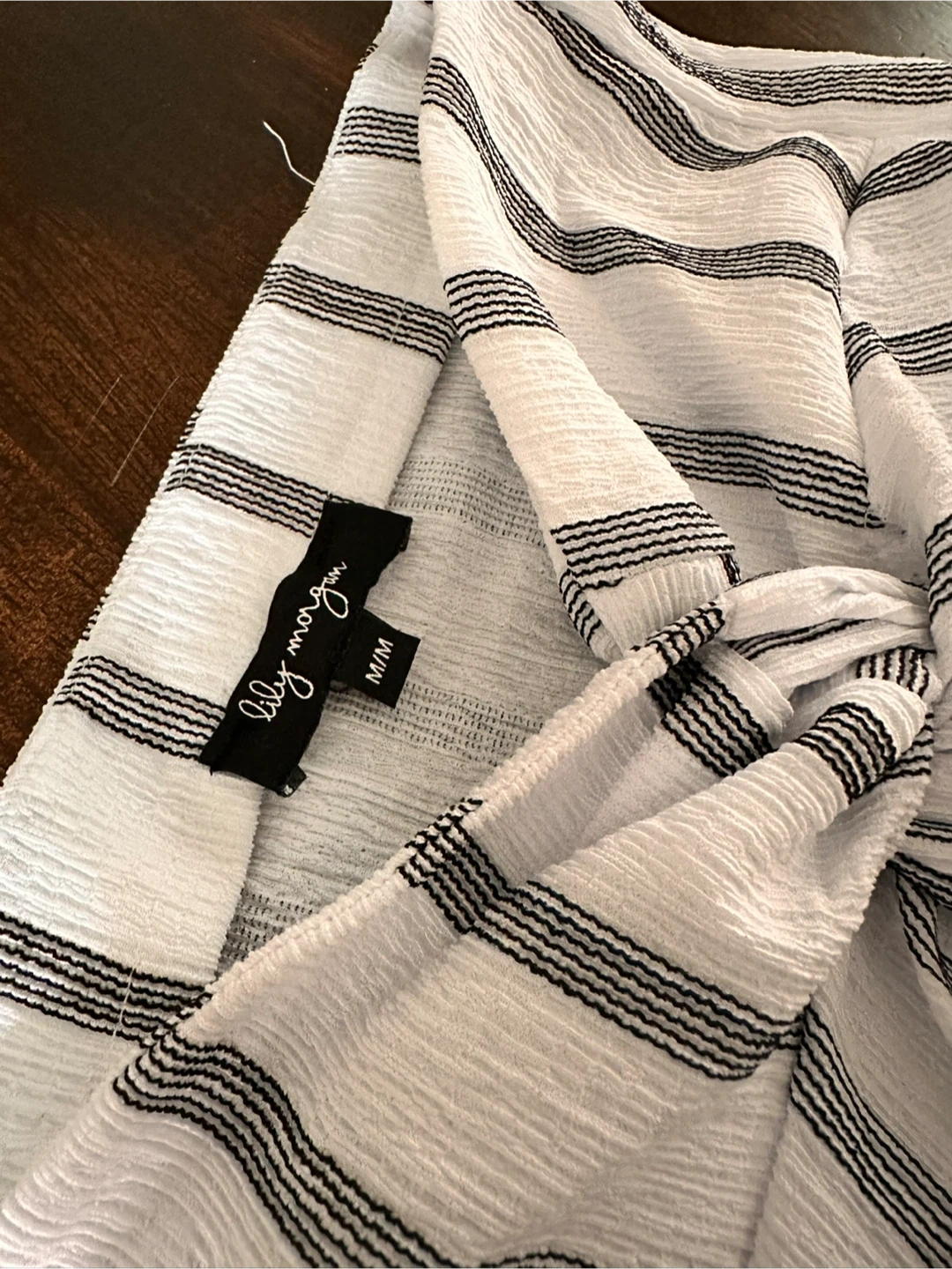 Selling a cute Lily Morgan skirt! It's a size M/M and features a stylish black and white striped pattern. Perfect for a casual day out or dressing up for a night out