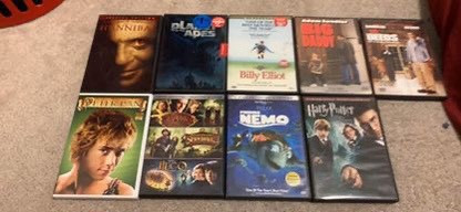 Lot of eight DVD movies. Titles include: Hannibal, Planet of the Apes, Billy Elliot, Big Daddy, The Princess Diaries, The Lord of the Rings: The Fellowship of the Ring, Finding Nemo, Harry Potter and the Sorcerer's Stone.