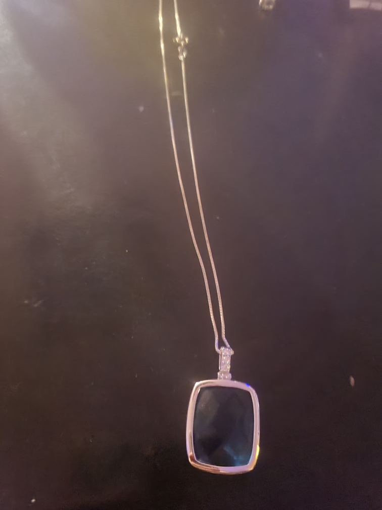 Striking blue stone pendant. It's in great condition and ready to add a touch of elegance to your style! I added a smaller piece that should also fit on the chain.