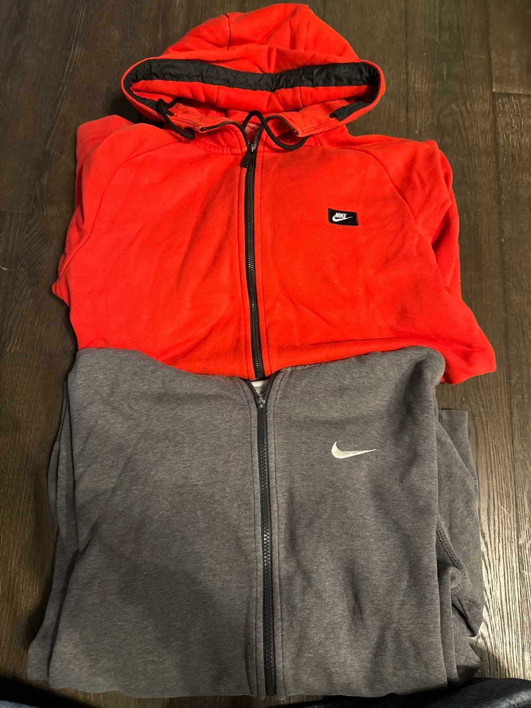 Selling two Nike full zip hoodies! One is red and the other is grey. Both are in great condition and ready for a new home.