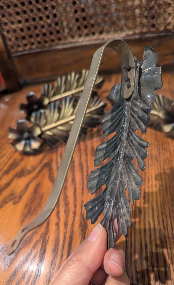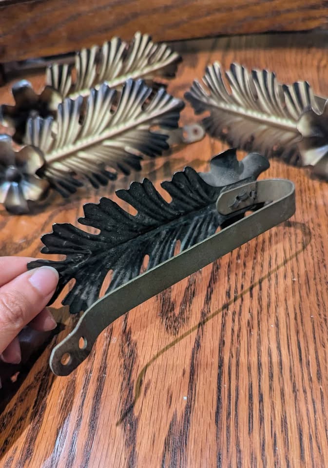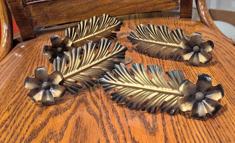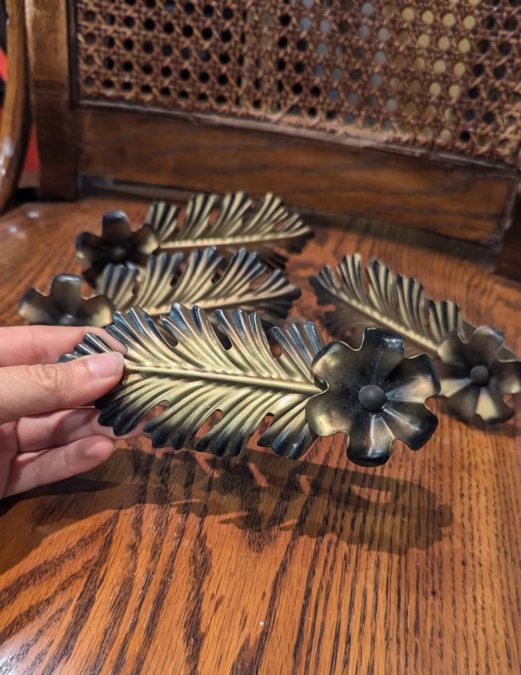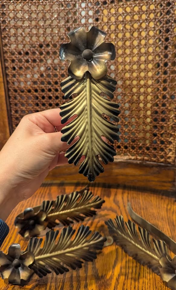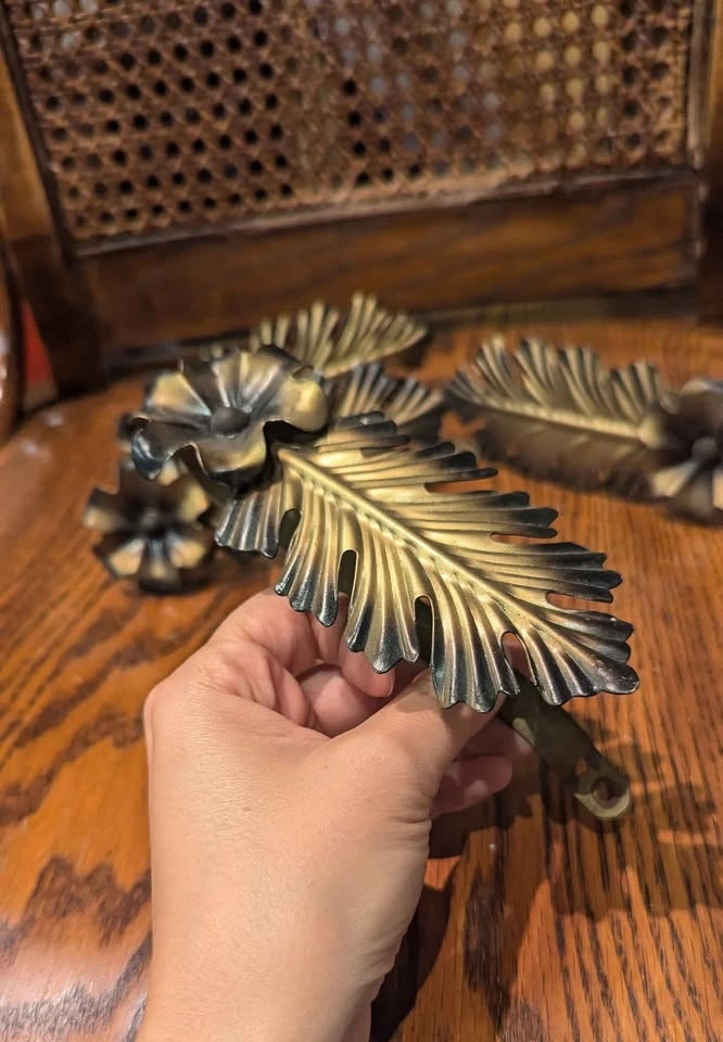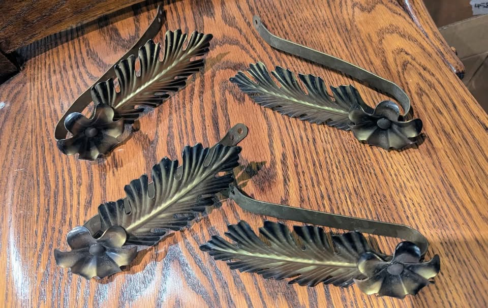 Mid-Century Brass Leaf & Flower Curtain Tiebacks ๐ฟ Set of 4