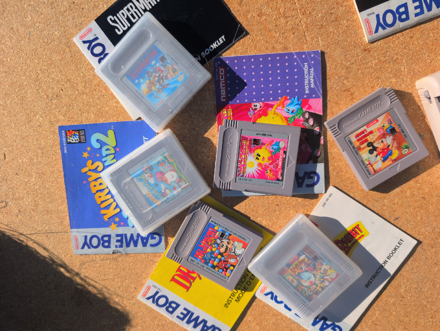 Selling a classic Nintendo Game Boy with a bundle of games! Includes the original Game Boy console, a carrying case, and several game cartridges like Super Mario Land, Kirby's Dream Land, Pac-Man, and Who Framed Roger Rabbit. Perfect for retro gaming enthusiasts!