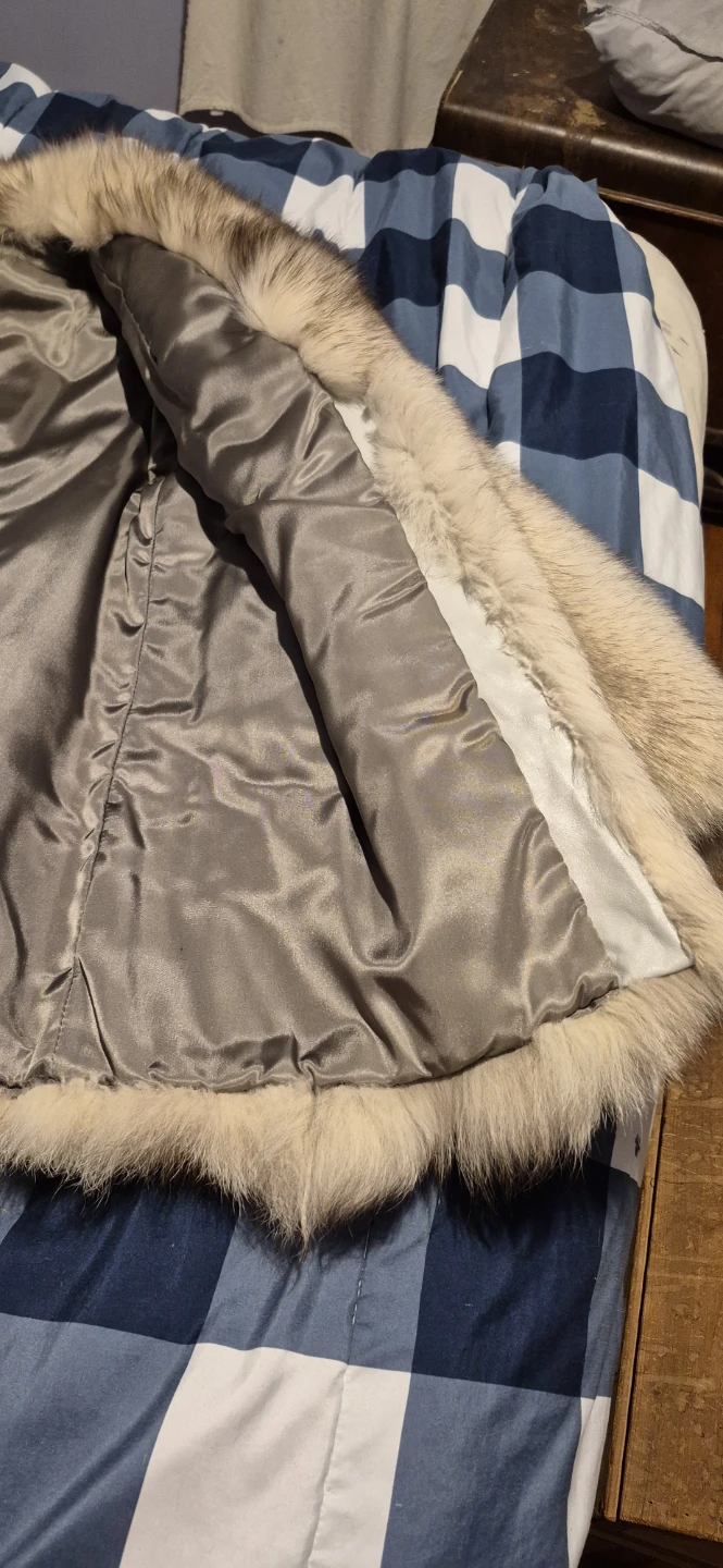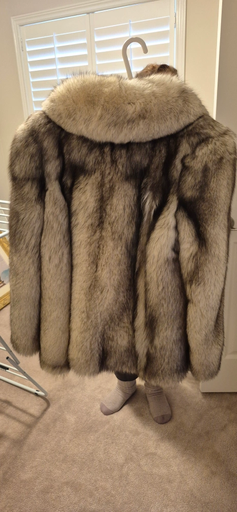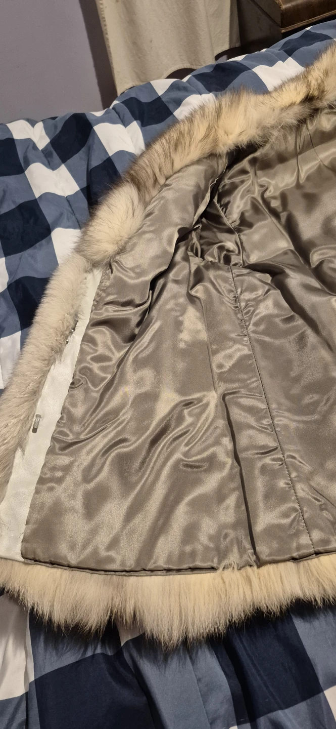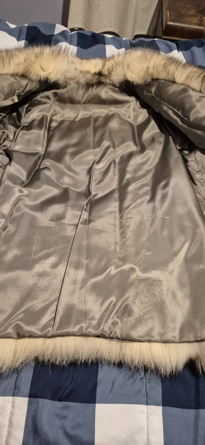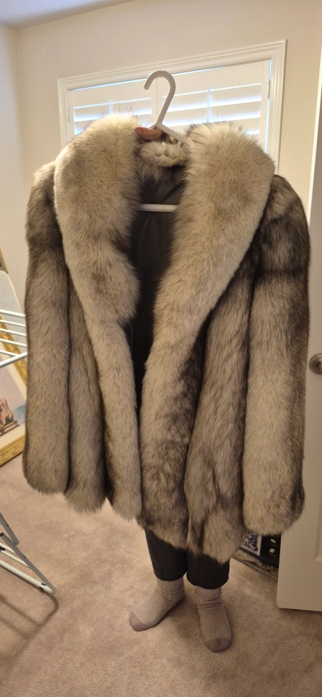 Wrap yourself in luxury with this striking Fox fur coat, perfect for adding a touch of glamour to any outfit. full collar. Mint Condition.Very Loveingly kept Very Well, very Clean. so soft and luxurious to the touch. will keep you warm during the cold Canadian Winters!
