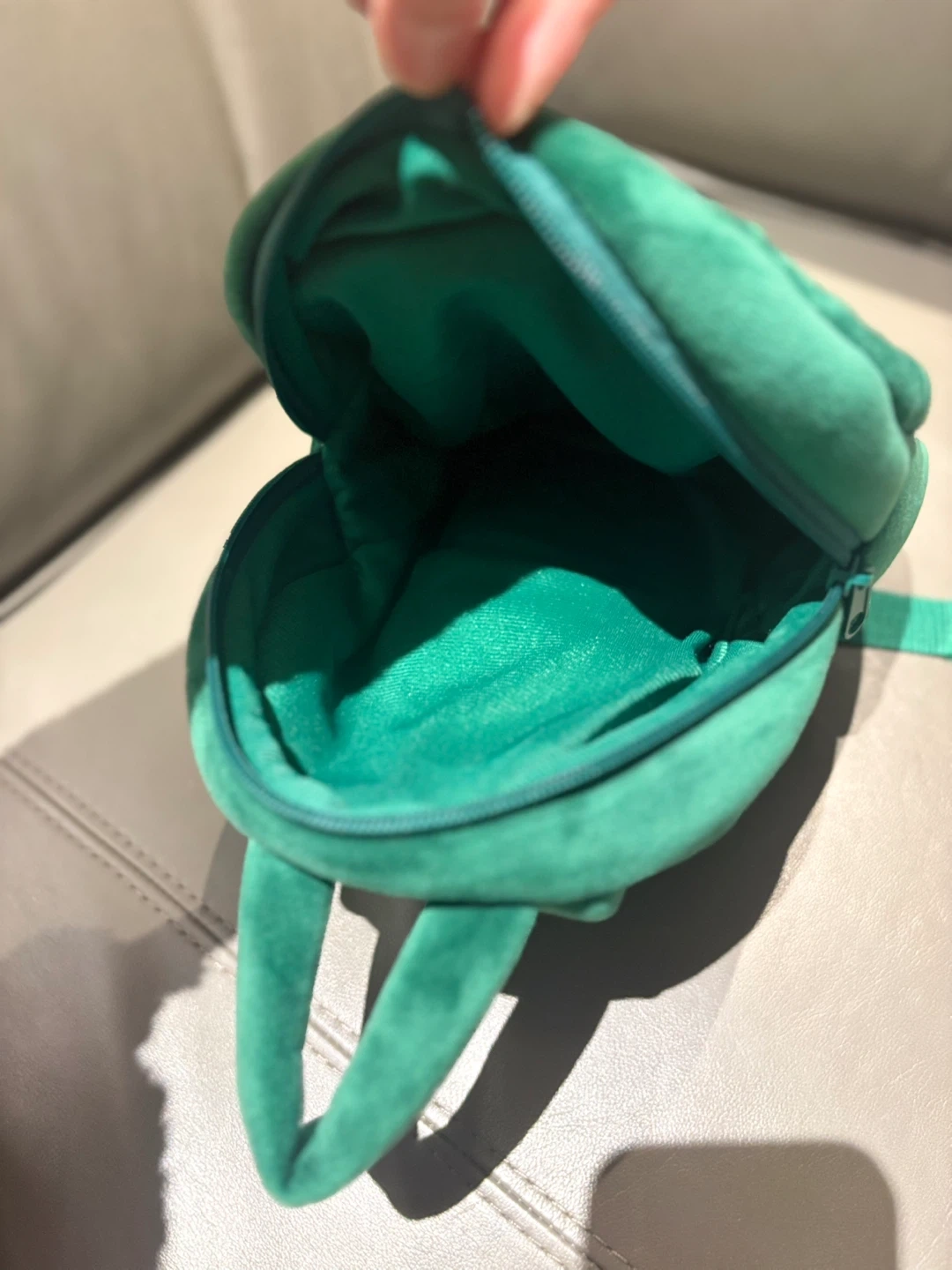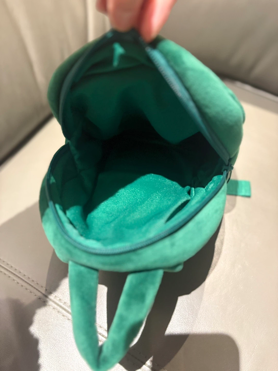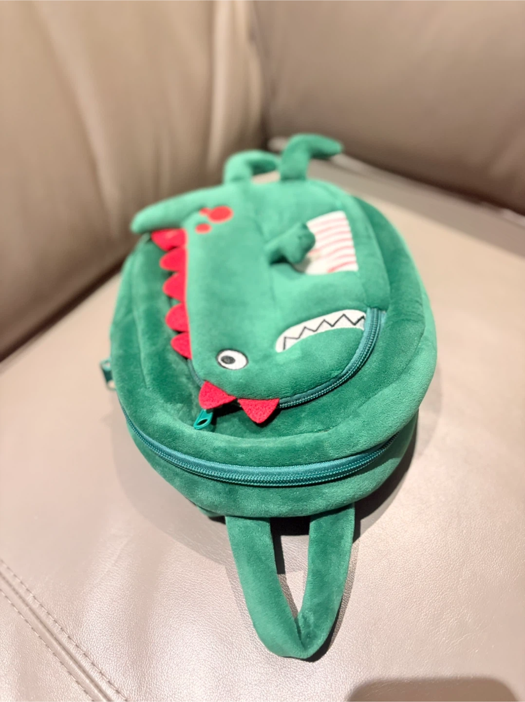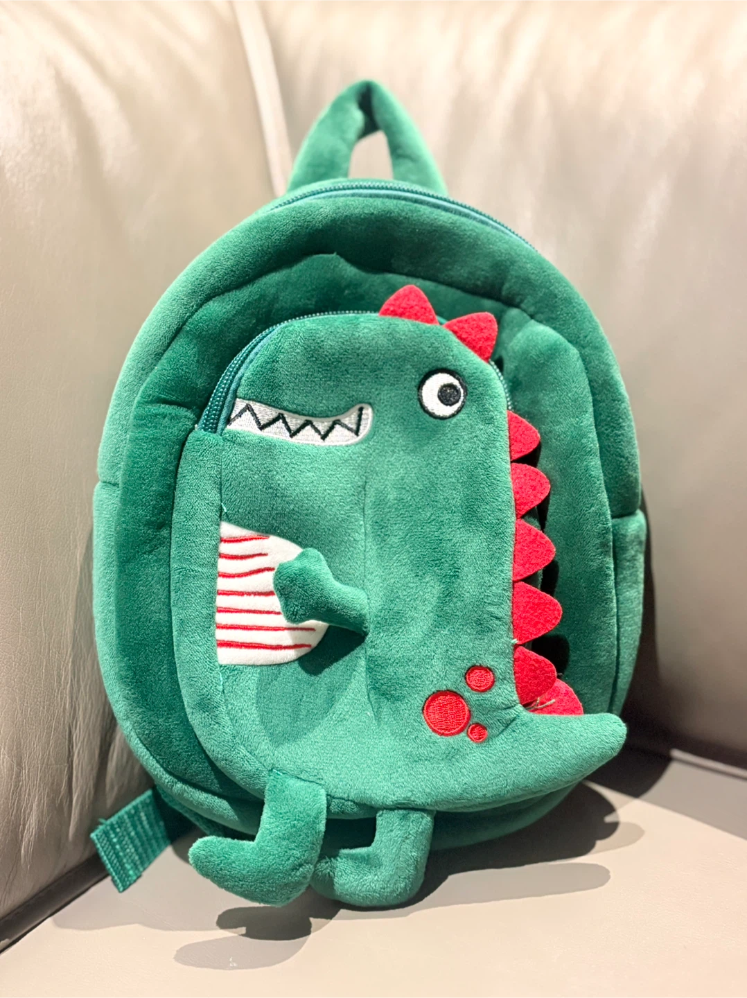 Super cute green dinosaur backpack for kids! It's made of a soft plush material and features a fun dinosaur design. Perfect for little ones to carry their toys or snacks on the go