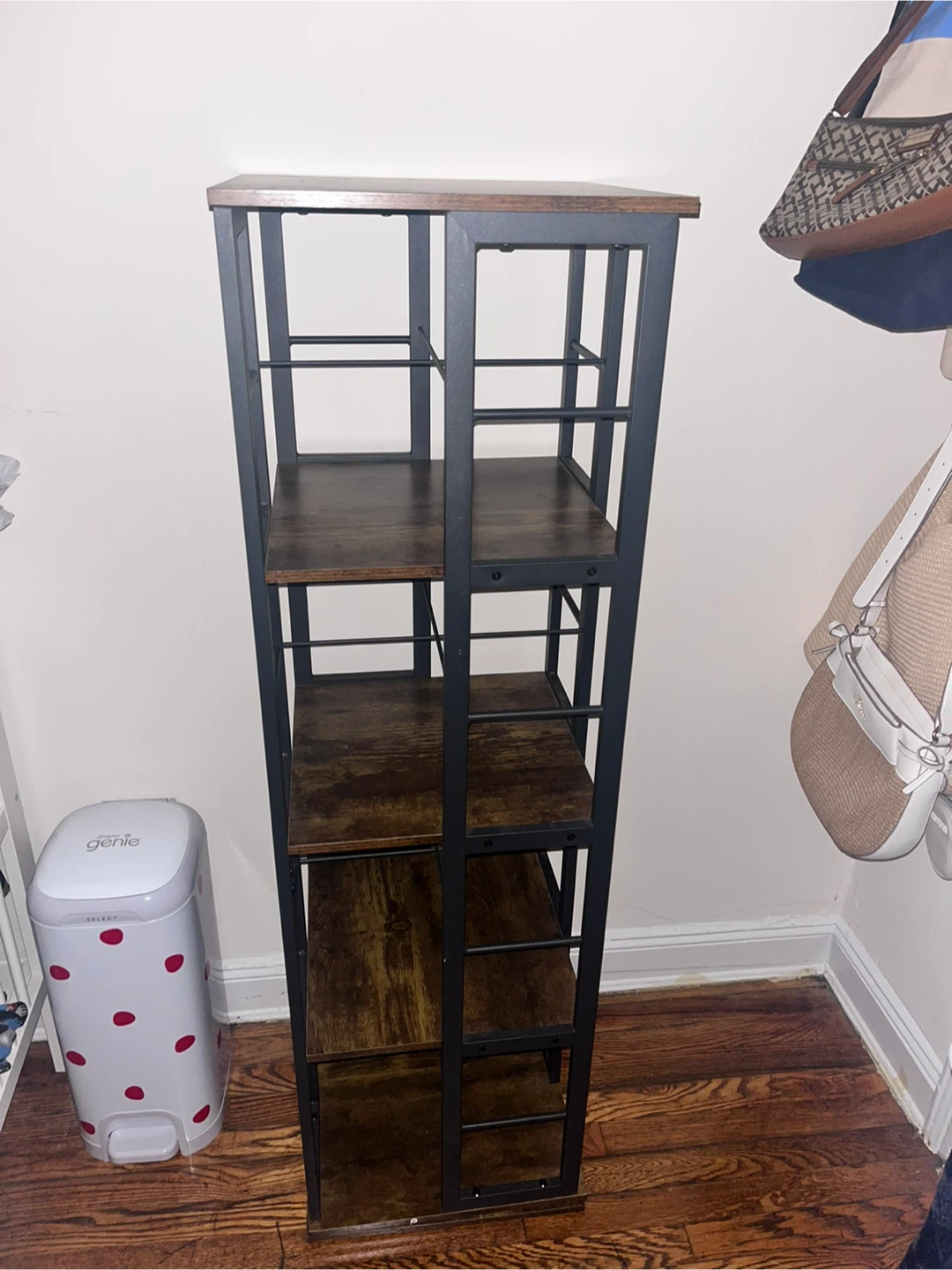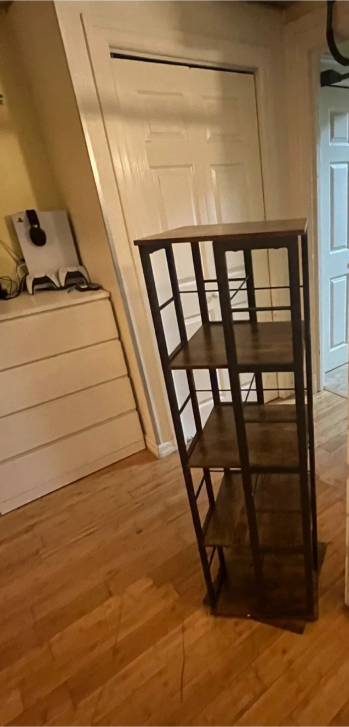 Selling a VASAGLE 4-tier bookshelf in great condition! This industrial-style bookcase is perfect for adding storage and style to any room. It features a sturdy metal frame and rustic brown shelves, providing ample space for books, decor, and more