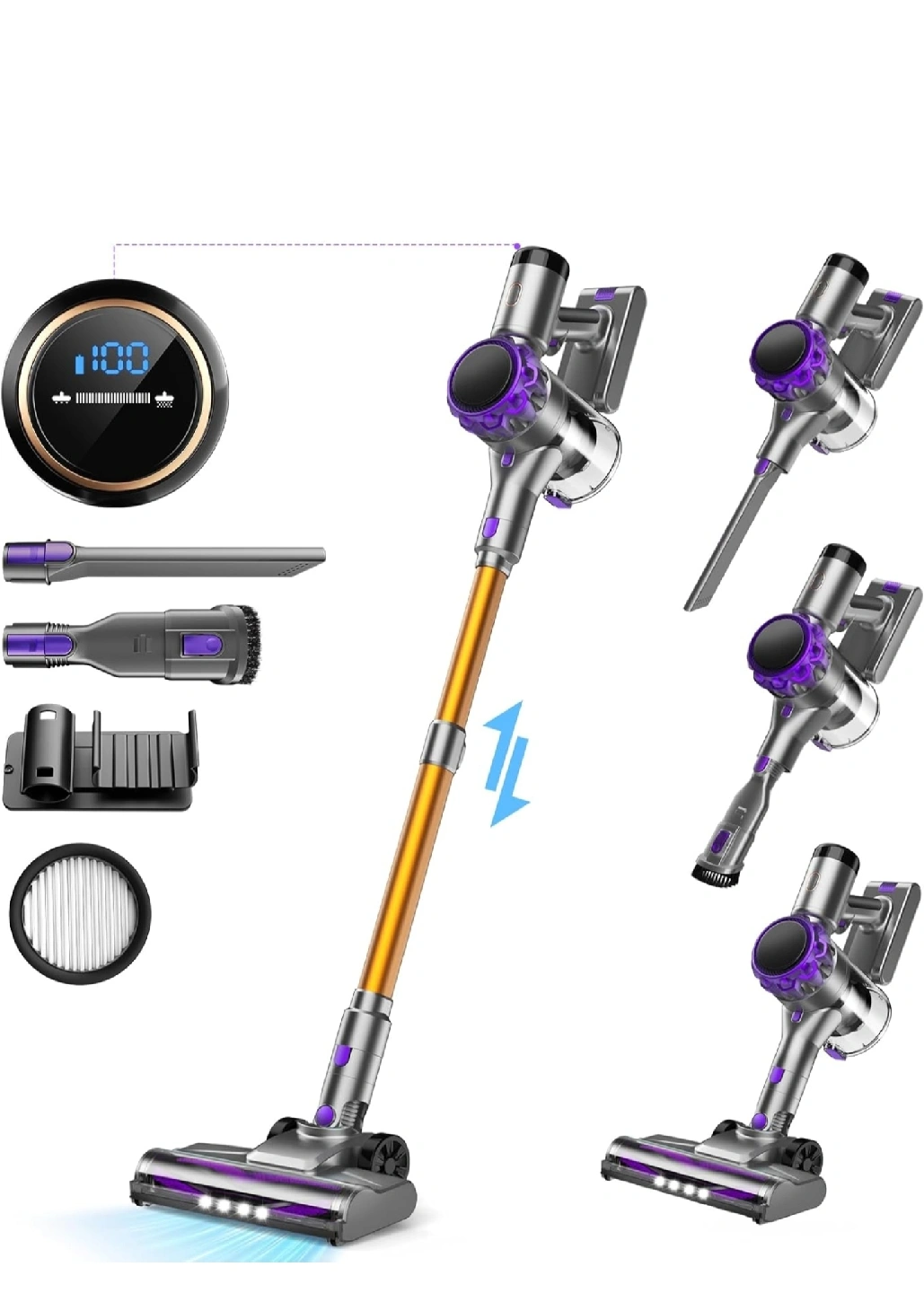 I'm selling an S3 cordless vacuum cleaner! It features an anti-tangle roller brush, perfect for pet families. It also has a detachable battery with a 4.5H quick charge and a max runtime of 55 minutes. The vacuum has an all-in-one LED display to show the status of the vacuum and battery level in real time