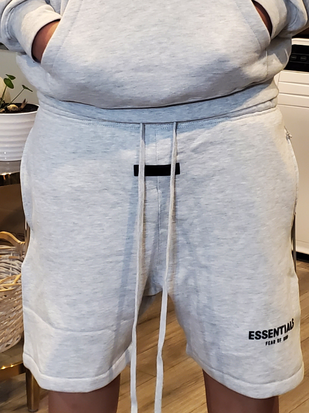 Selling a matching Essentials Fear of God hoodie and shorts set! The set is a light grey colour and is in great condition. Perfect for lounging around the house or running errands. The hoodie has the Essentials logo on the back, and the shorts have the logo on the front. Super comfy!