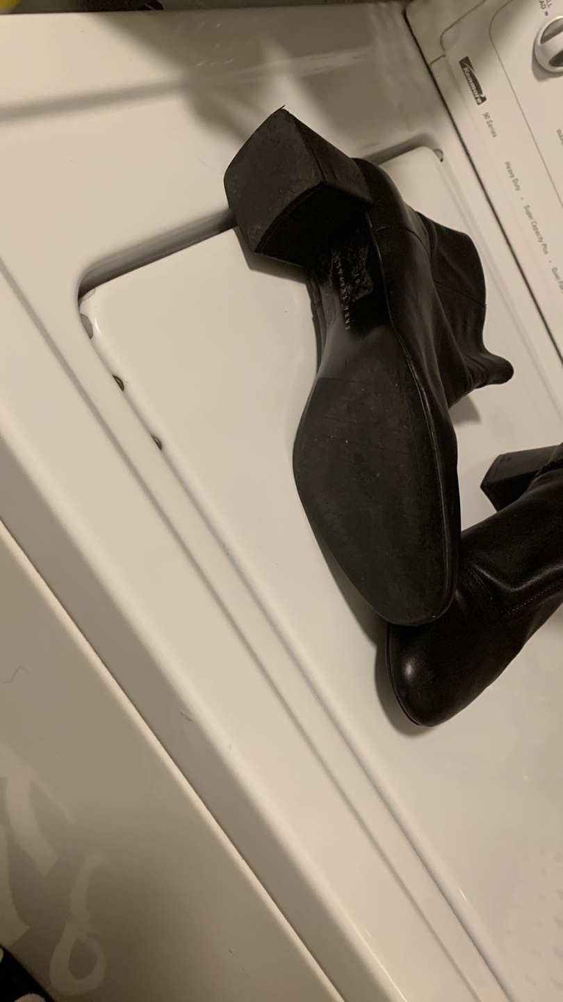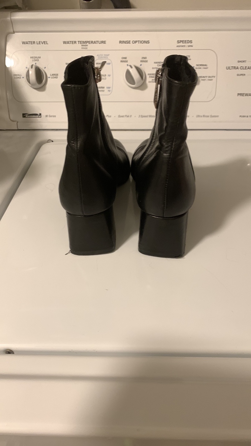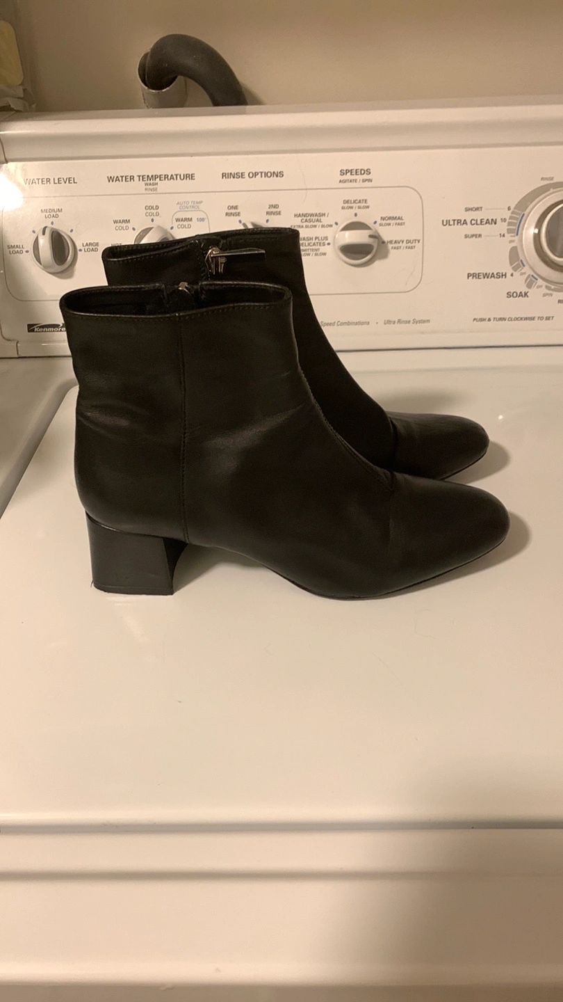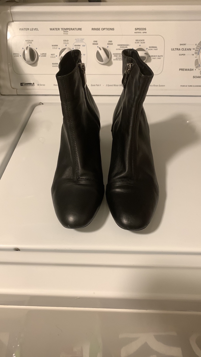 Selling a pair of black ankle boots. They have a zipper and a block heel. Great for fall!
