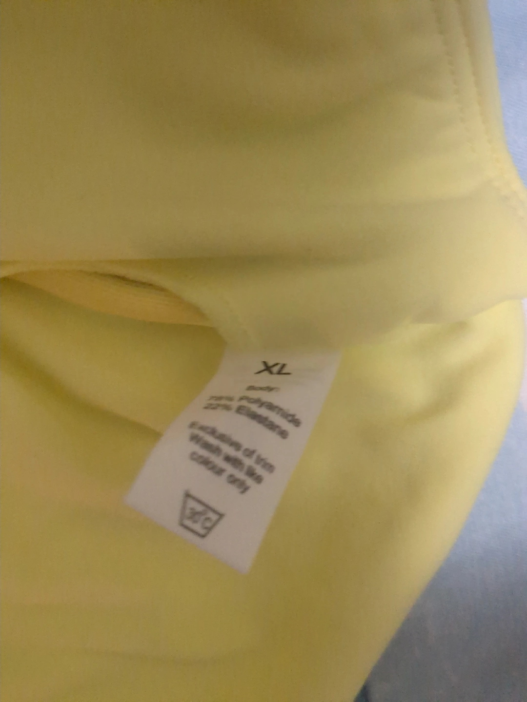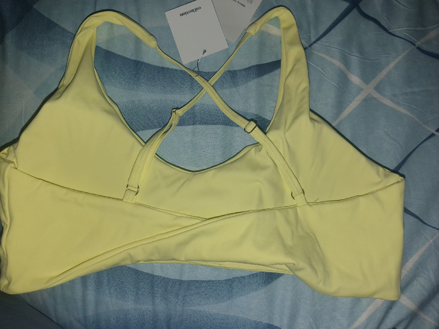 Selling a Collection brand sports bra , workout bra, in yellow, size XL, I think it fit large to xl. The material is made of 78% polyamide and 22% elastane