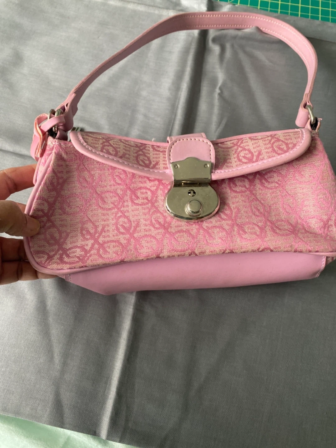 883A cute pink Melissa shoulder bag! It's in good condition. Perfect for adding a pop of colour to your outfit. The bag features a unique design and a secure clasp closure. It's a stylish and functional accessory for everyday use