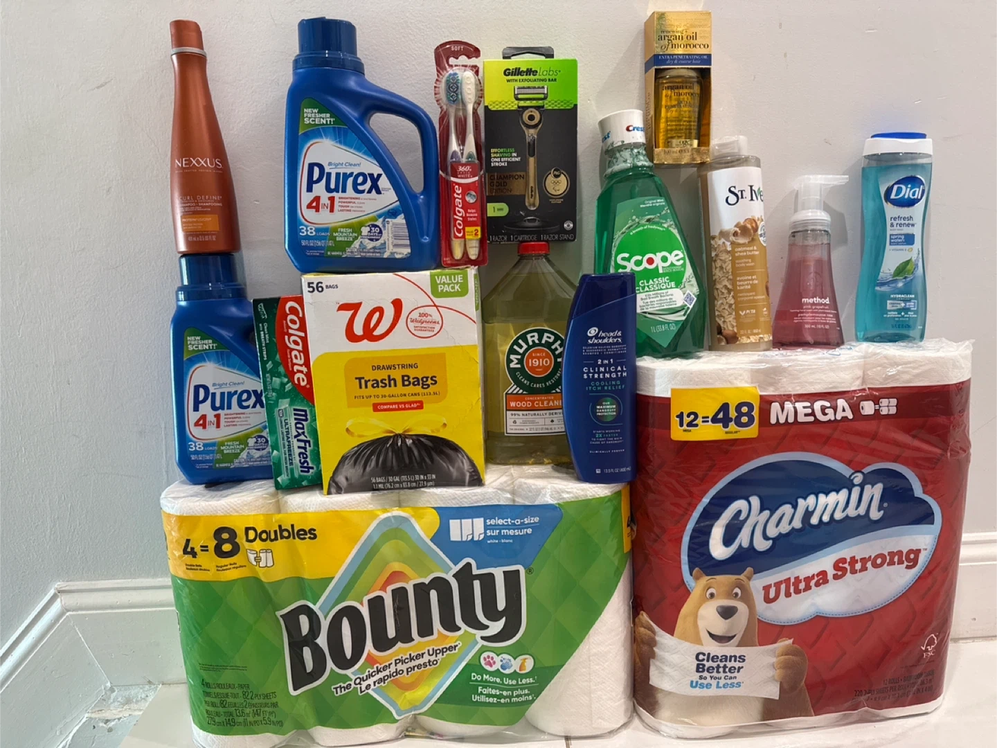 39Selling a bundle of household cleaning and personal care items. Includes brands like Purex, Colgate, Charmin, and more. Perfect for stocking up on essentials!