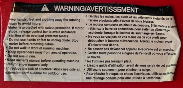 Spectra 6.5V electric snow shovel. You can read reviews for this item online to get a sense of what it is useful for and its limitations compared to more powerful units. I have found it works best in light snow. Takes a fair amount of work to get it through other types of snow. Price is right to try out an electric snow shovel. Some rust as in photos. Pickup Bayview and Finch area. Sold as is. If the ad is up it’s still available.