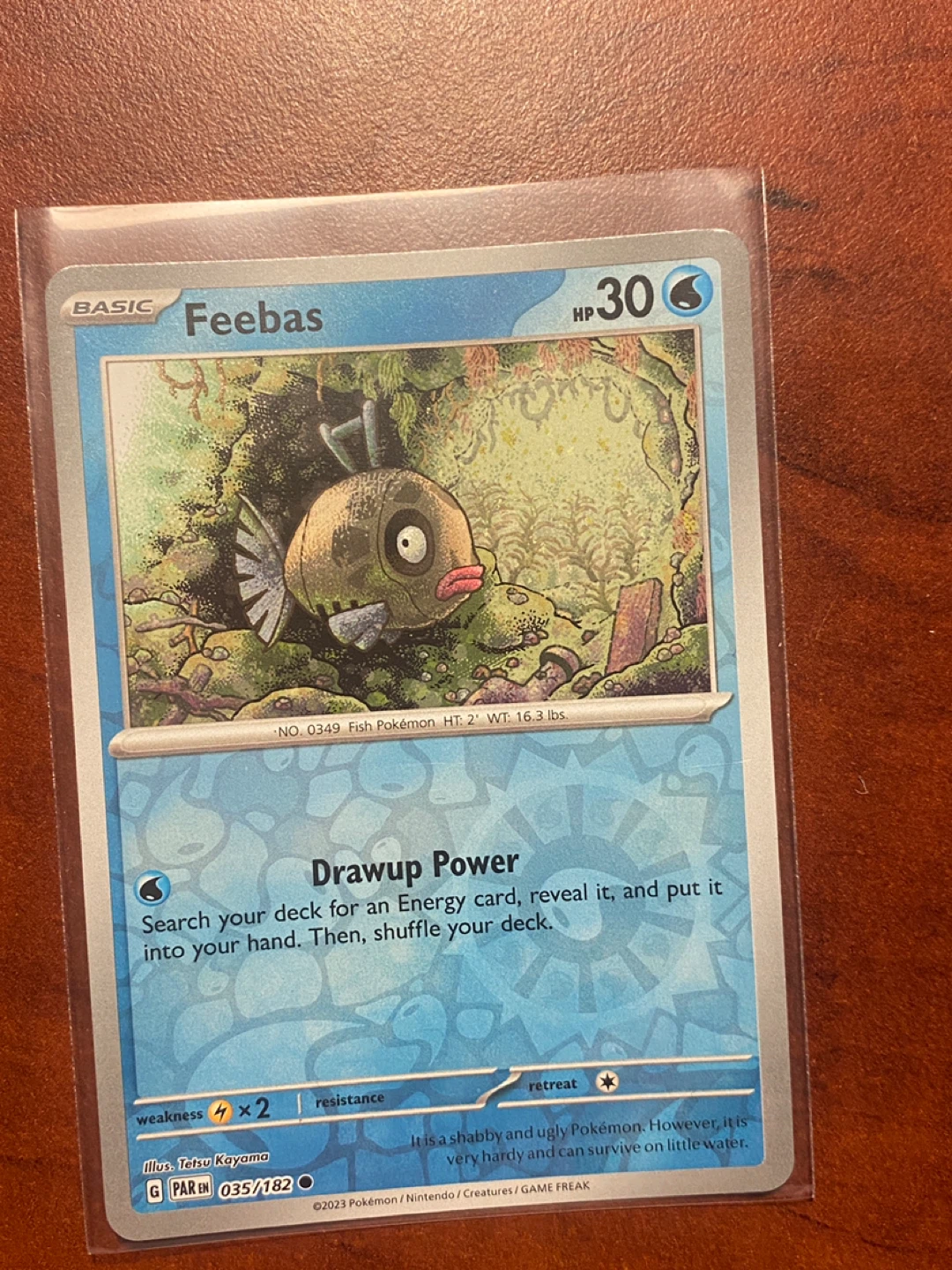 Selling a Feebas Pokémon card in great condition! It has the Drawup Power ability, allowing you to search your deck for an Energy card. A great addition to any collection!