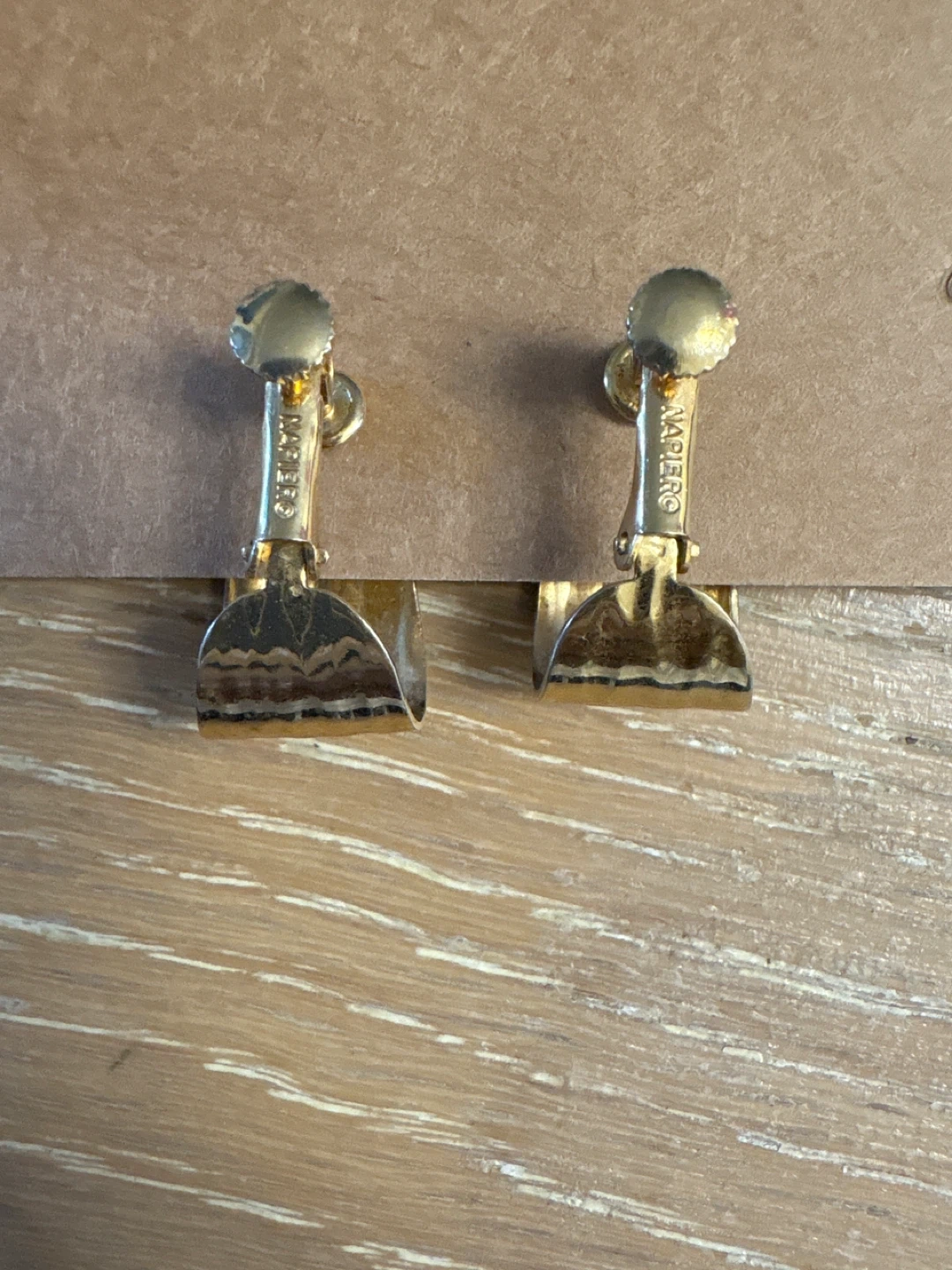 Selling a pair of gold-toned clip-on earrings by Napier. They have a classic and elegant design, perfect for any occasion! These earrings are in good condition and ready to add a touch of sophistication to your jewelry collection