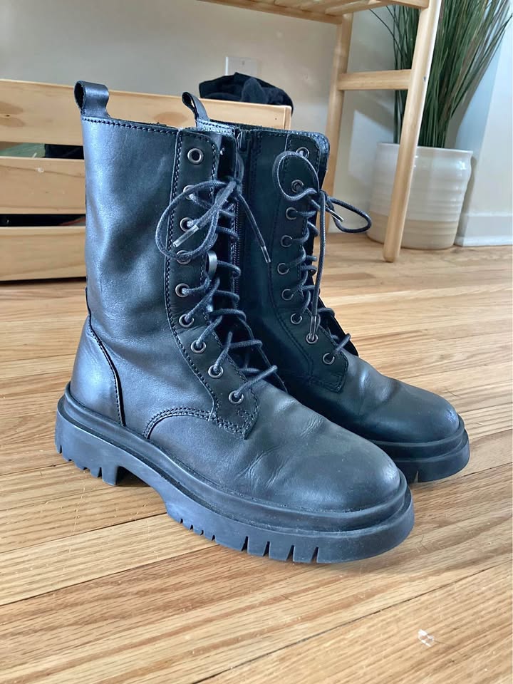 Zara Girls Black Vegan Leather Combat Boots - size 35