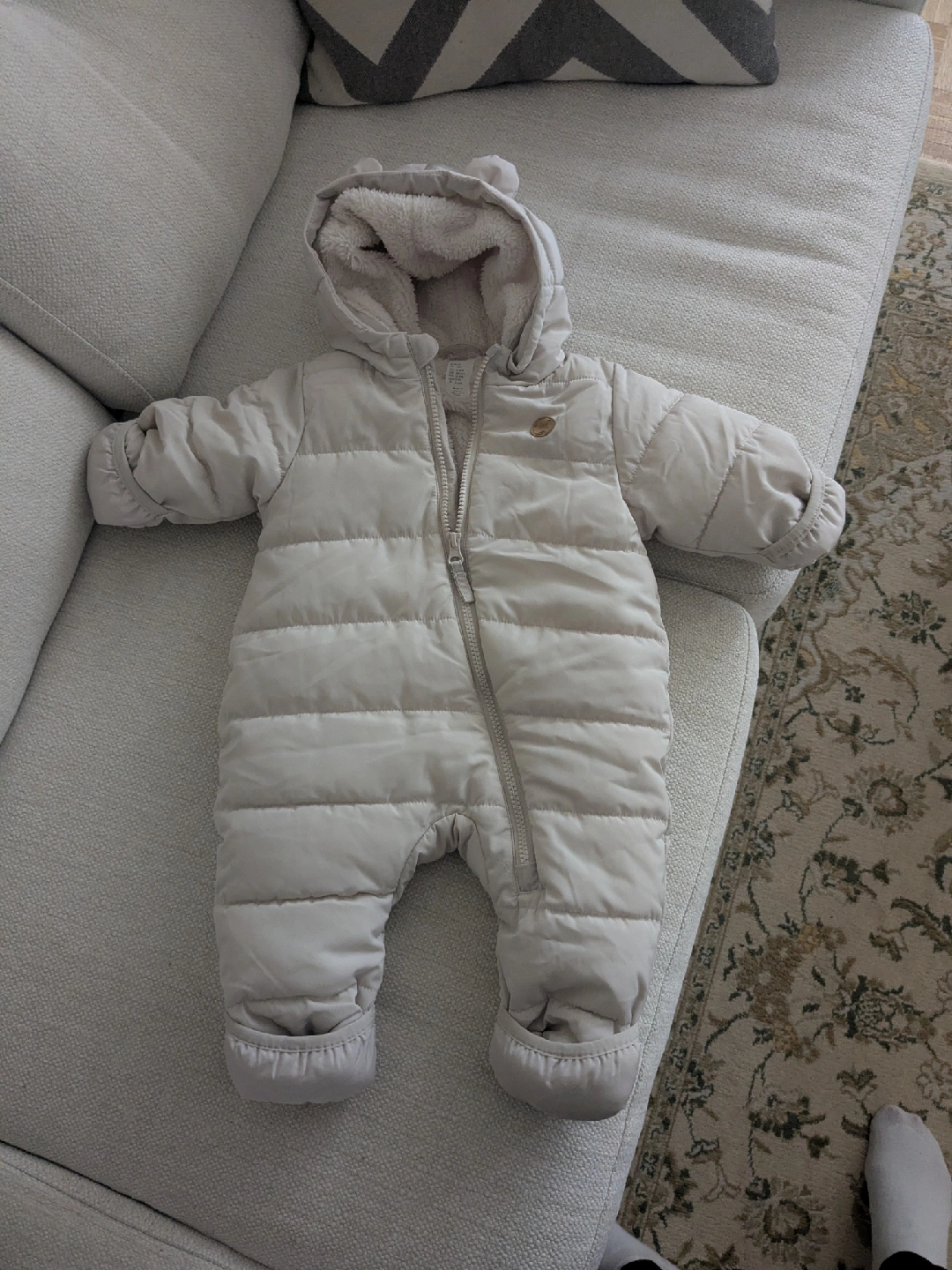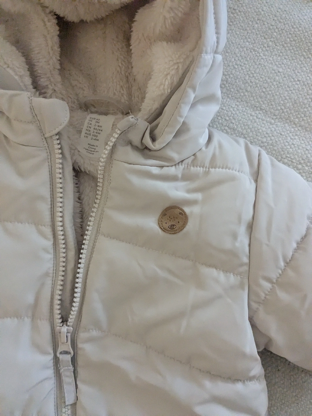 Keep your little one cozy this winter with this adorable H&M baby snowsuit! It's in great condition and perfect for keeping your baby warm on chilly days. The size is 2-4 months. but at the time my baby was 2 this one was so big I assume that's for 5-6 months