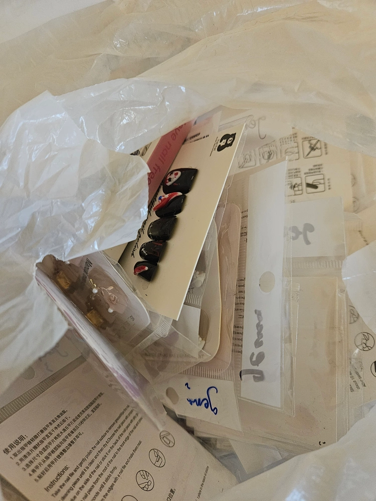 Selling a collection of nail art supplies. Includes various nail pieces and accessories. Perfect for creating unique nail designs at home! all new suprise bag