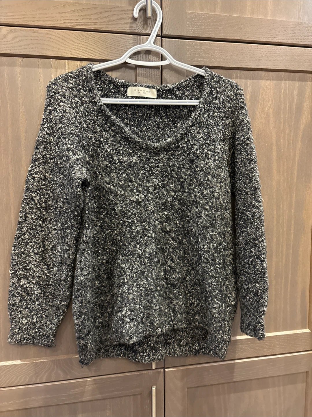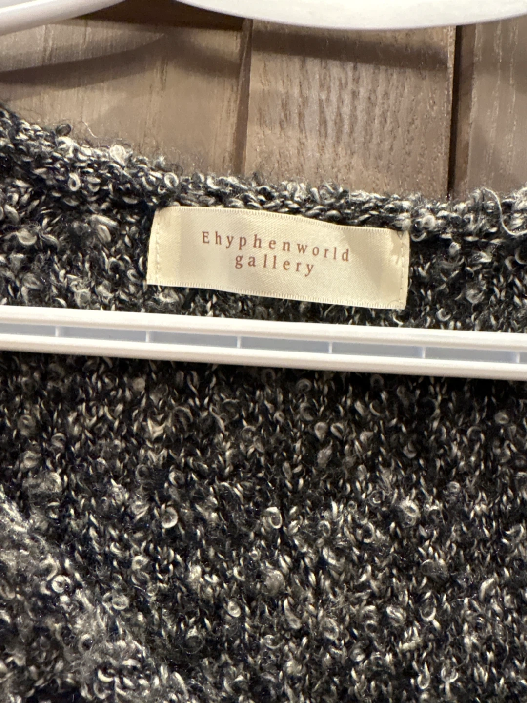 Selling a cozy Ehyphenworld Gallery sweater. It’s in great condition and features a unique textured knit in shades of grey and white. Perfect for staying warm and stylish!