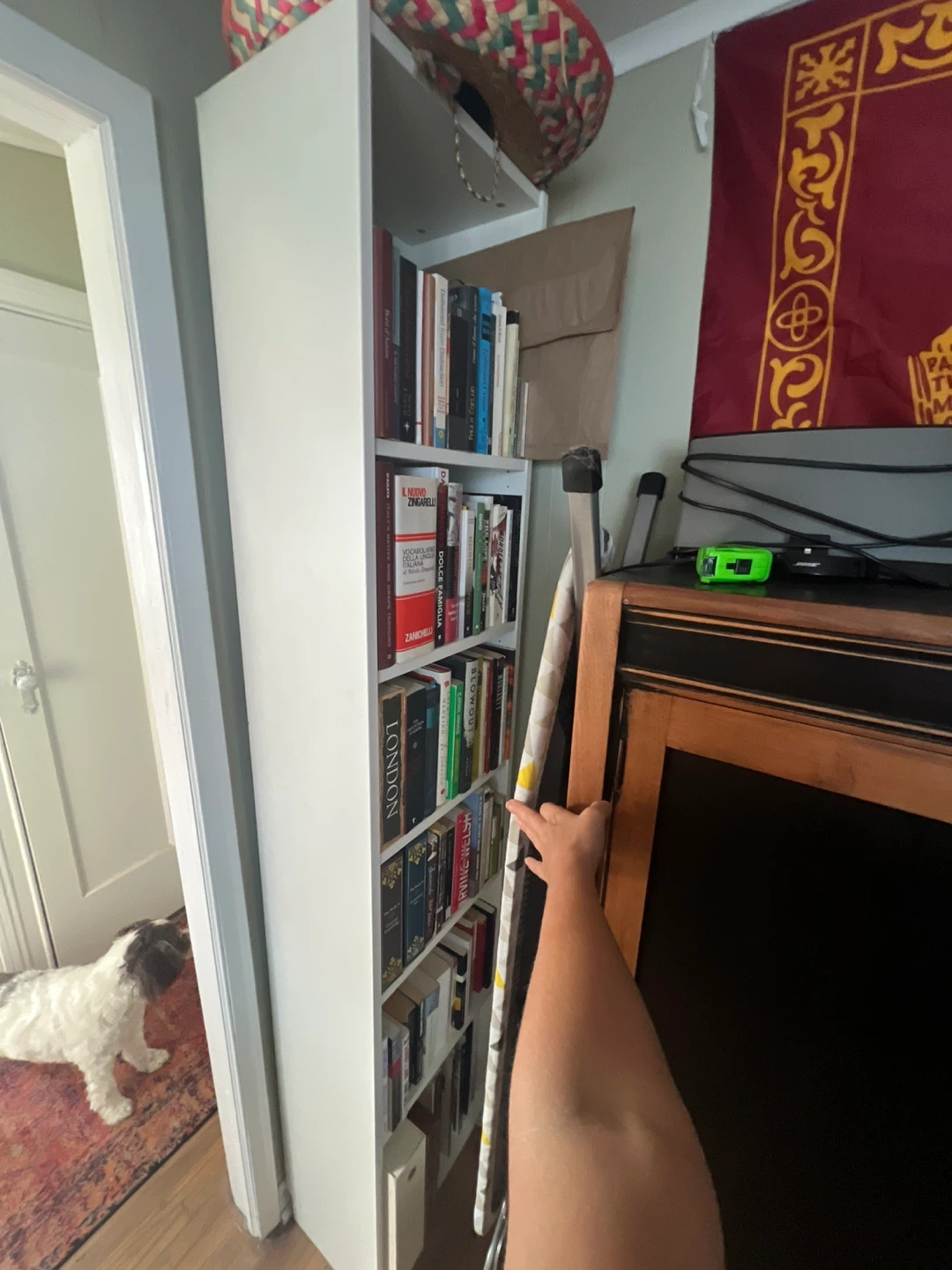 Selling a white bookcase. It's in great condition and perfect for storing your favourite books or displaying decorative items. It features multiple shelves to help keep things organized. There are books of different categories in it.