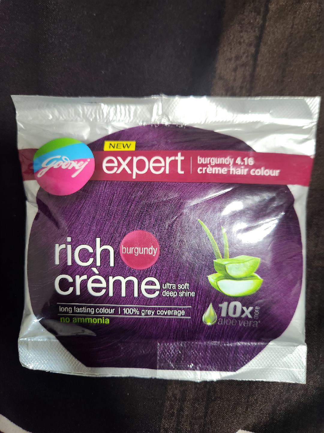 Get vibrant, long-lasting colour with Godrej Expert Rich Crème hair colour in Burgundy 4.16! This crème formula offers 100% grey coverage and is enriched with 10x more aloe vera for an ultra-soft, deep shine. Plus, it's ammonia-free!