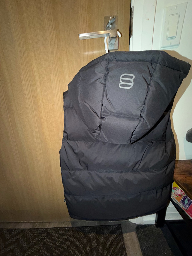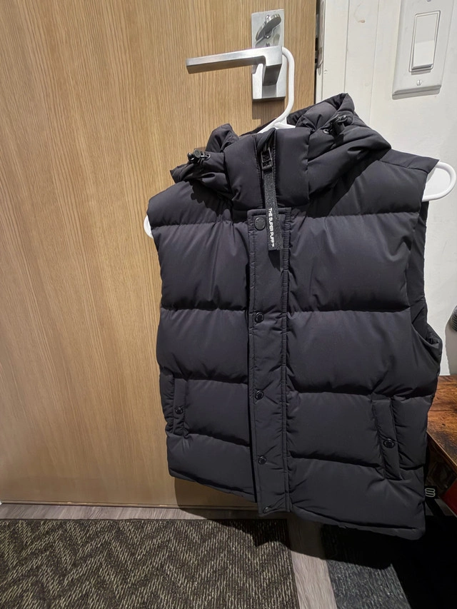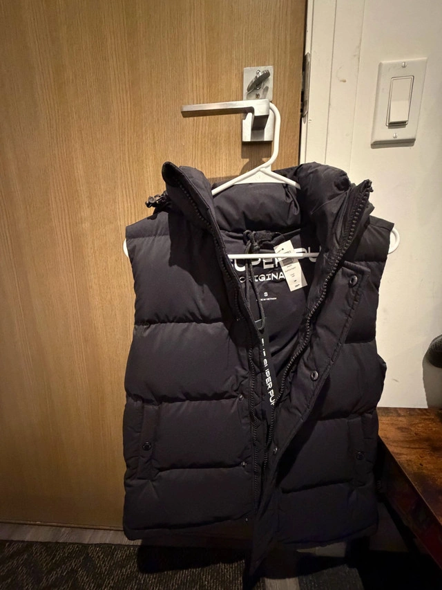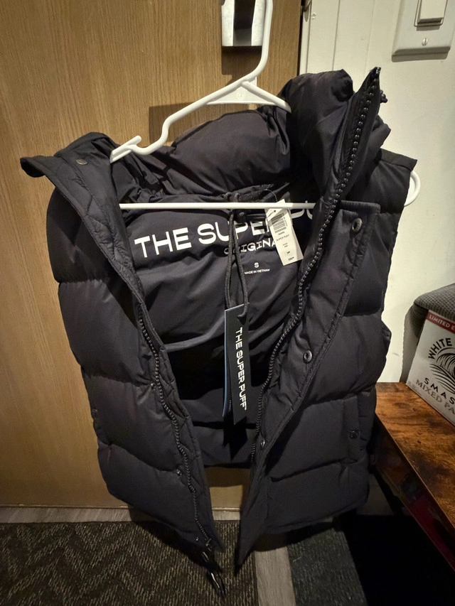 Brand new with tags, black Super Puff vest in size small, perfect for adding an extra layer of warmth! The vest is in great condition and has been well-cared for. It's a stylish and practical piece for those in-between weather days. Key Features: * Brand: Aritzia * Style: The Super Puff Vest * Colour: Black * Size: Small Looking for a new home, this vest could be yours! Disclaimer: If the ad is still up, it's still available!