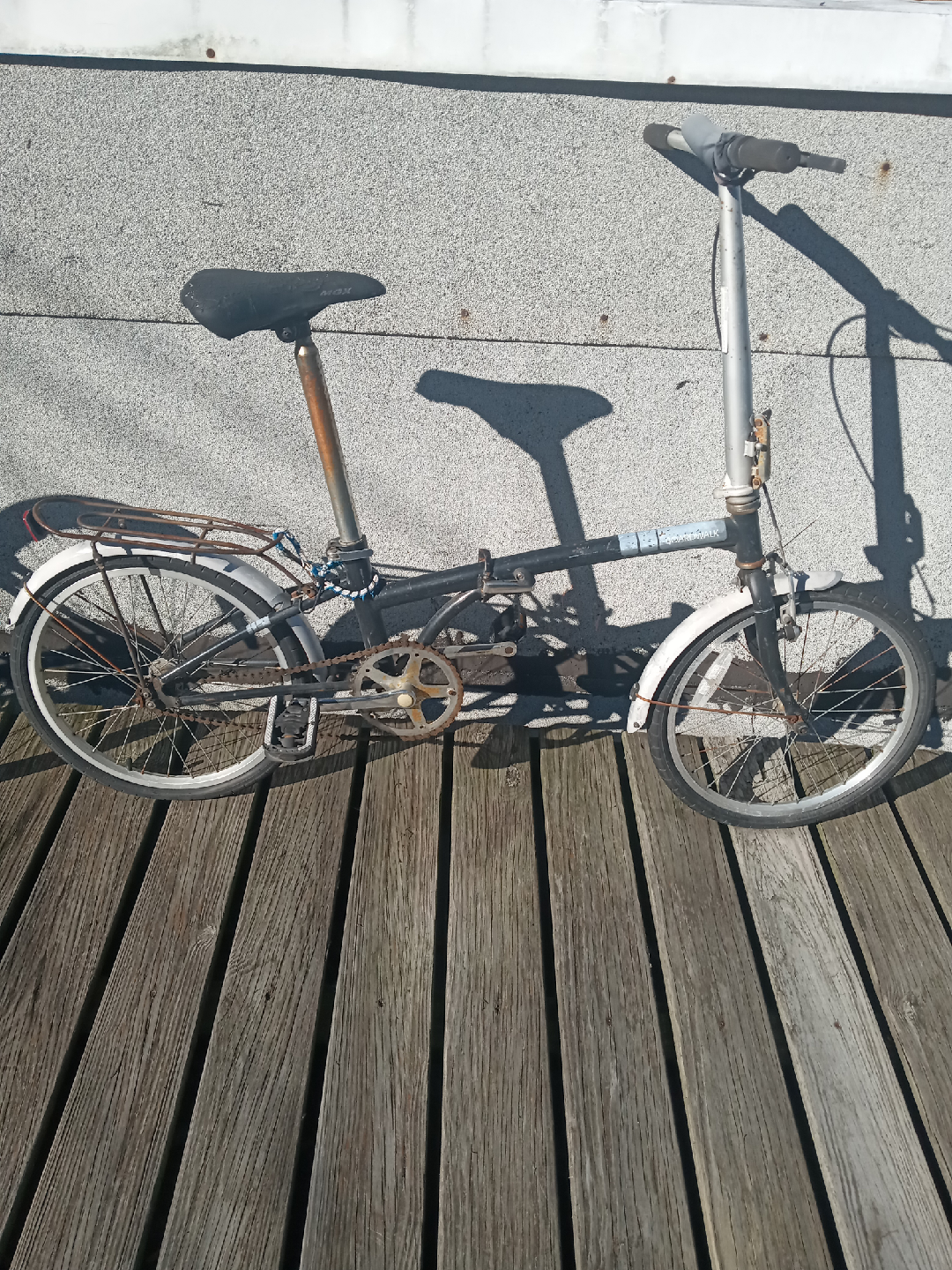 Selling a Awesome vintage "Dahon Boardwalk folding bike! It's a convenient and compact option for city commuting or storage in small spaces. It does show signs of wear and tear but is still functional.