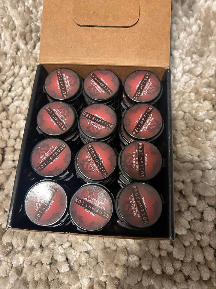 Bulk pack of Redemption Organic Tattoo Lubricant and Aftercare. Small individual containers. Only 1 missing.