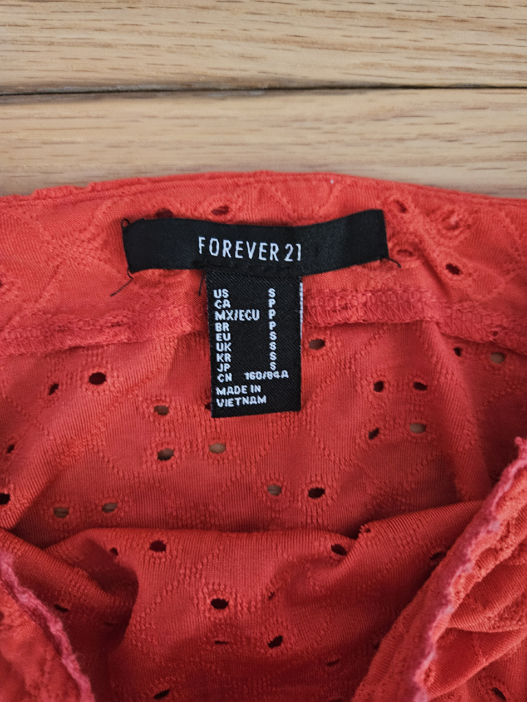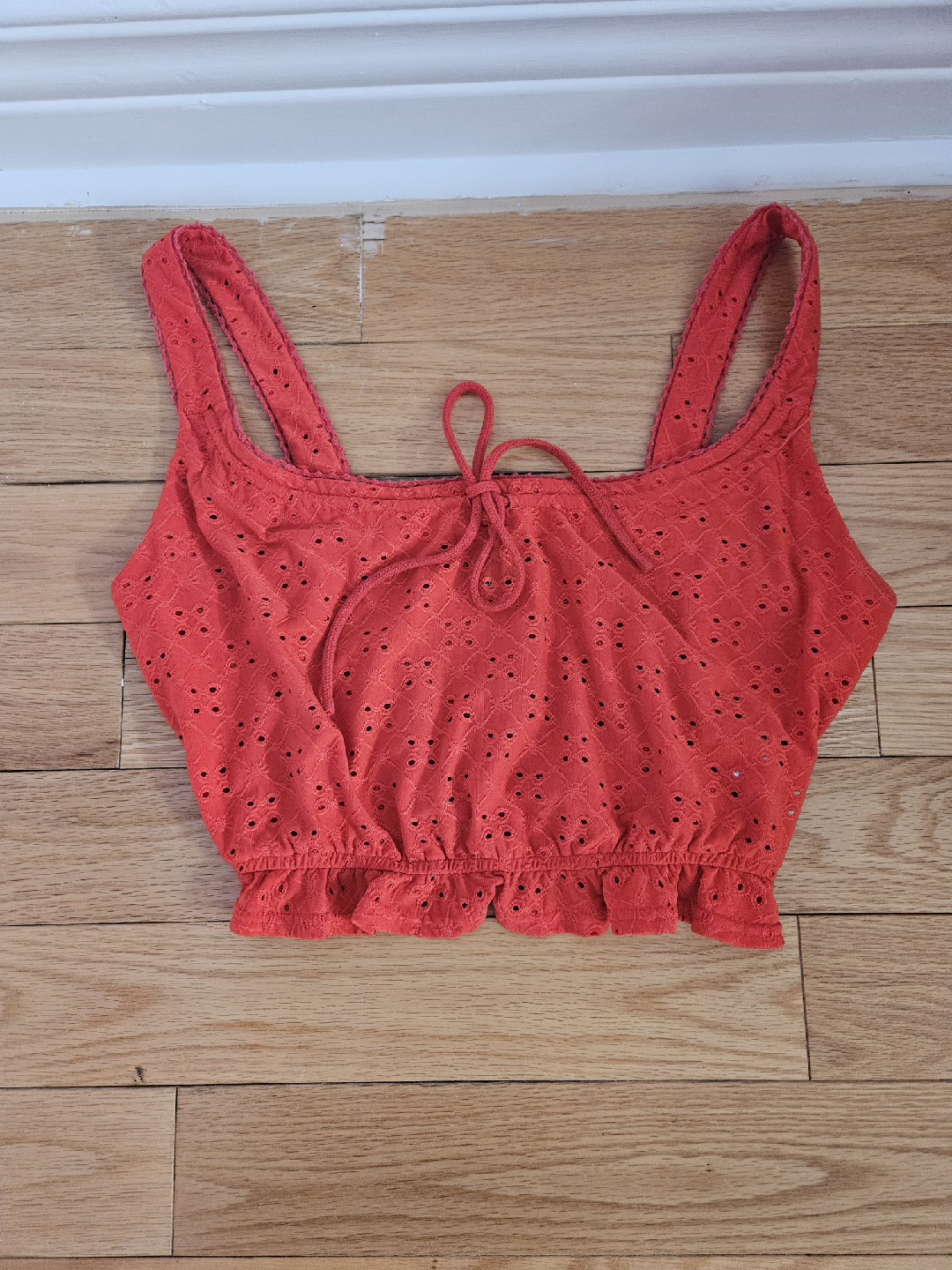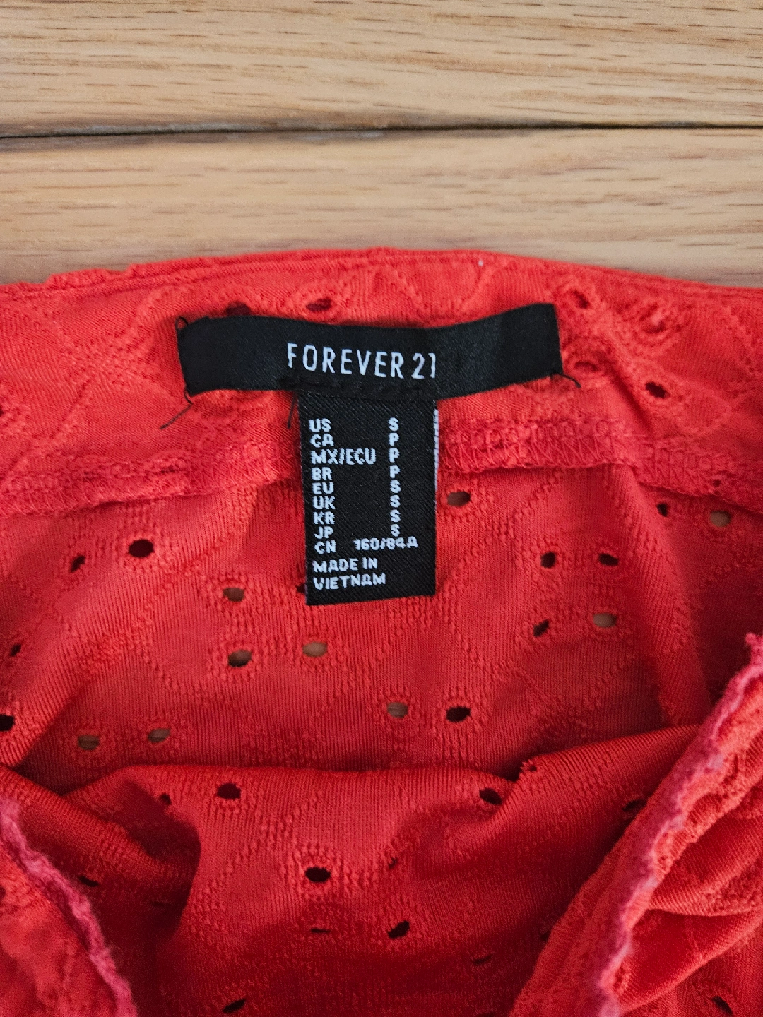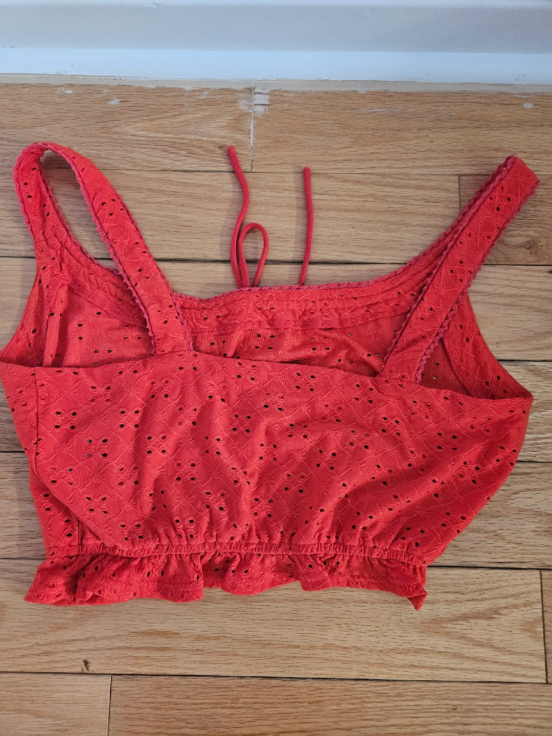 Selling a cute red crop top from Forever 21 in size small! It has a unique eyelet design and a tie detail at the front. Perfect for anytime.