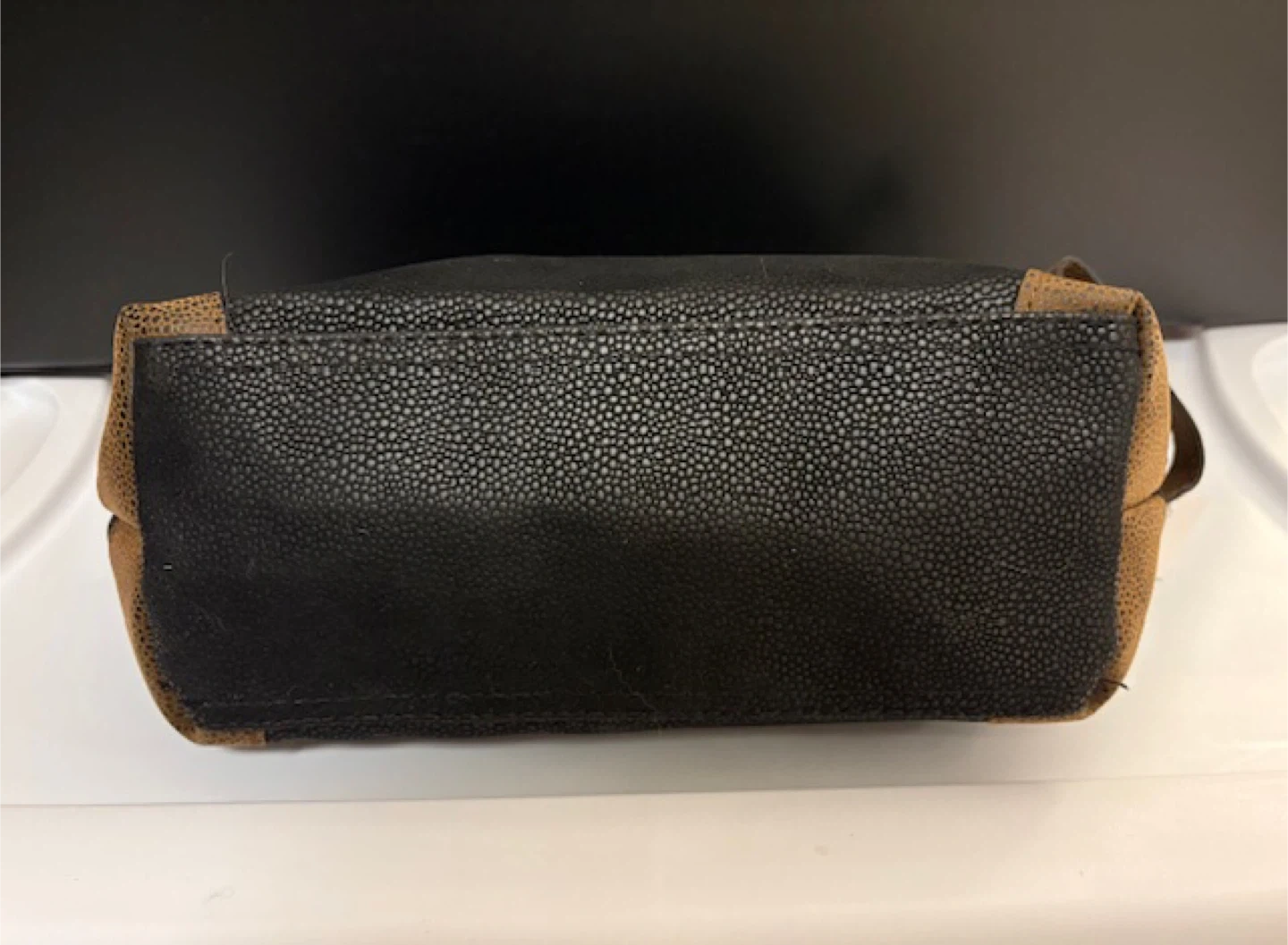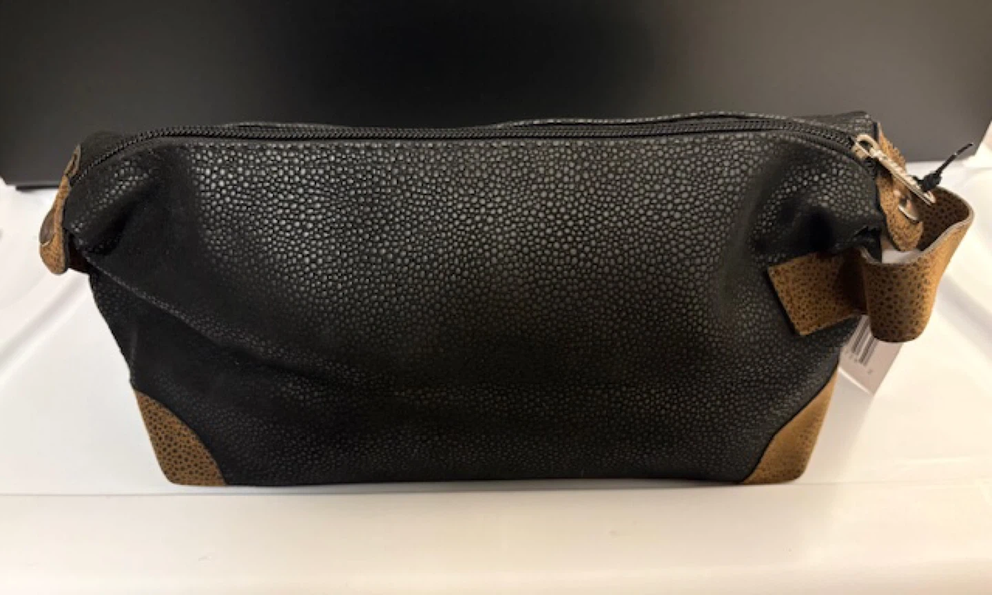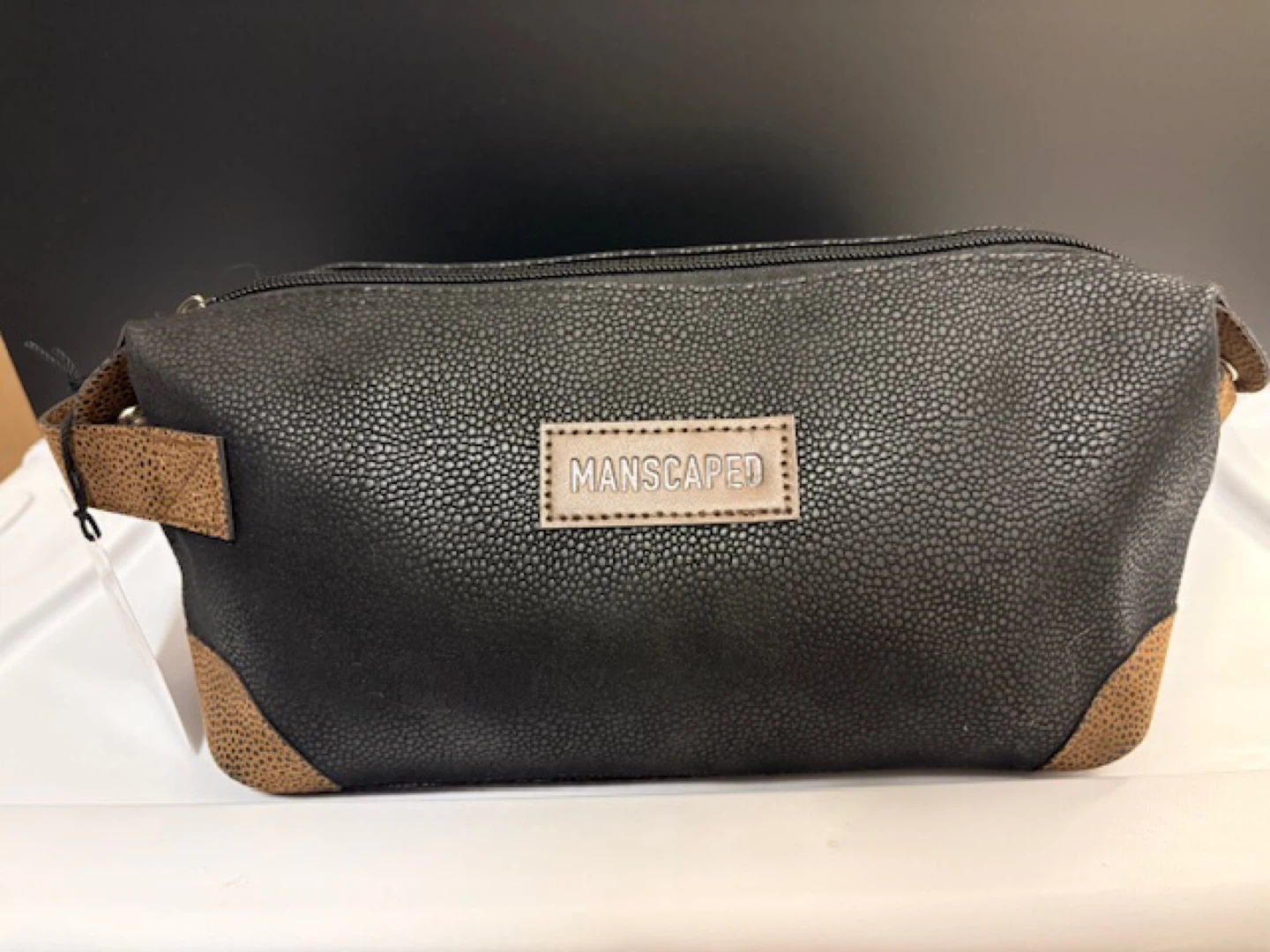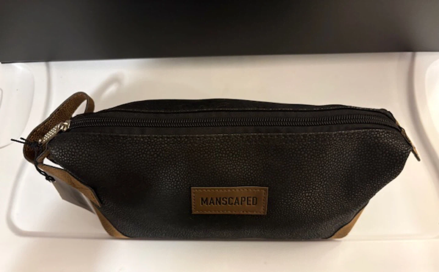 Selling a MANSCAPED toiletry bag. It's in great condition and perfect for travel or everyday use. The bag is black with brown accents. 🤩