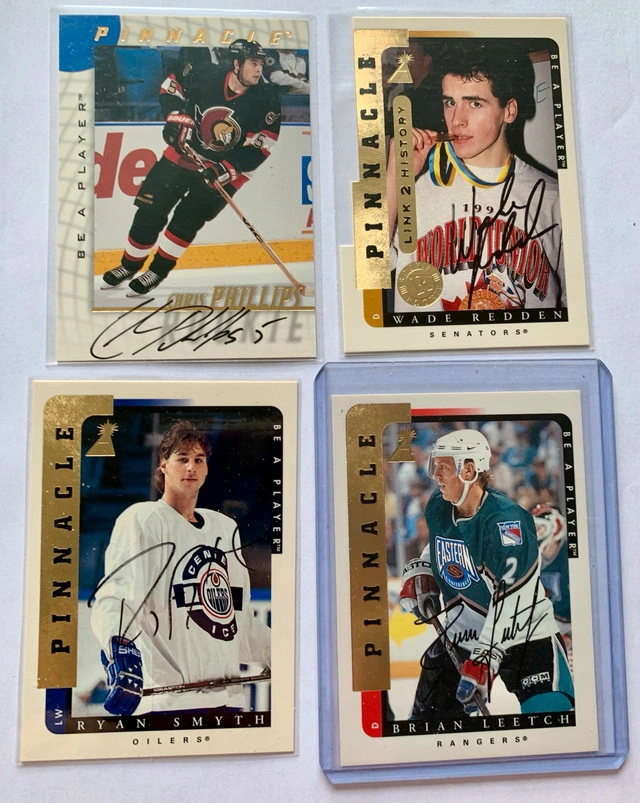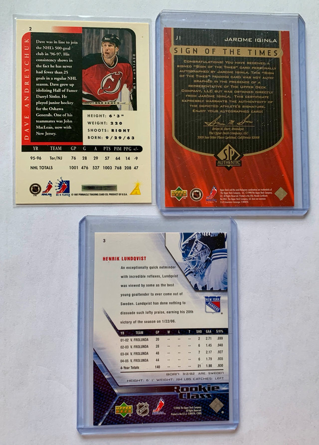 Up for sale is a collection of 7 NHL cards, featuring 6 autographs and 1 rookie card. These cards are a must-have for any hockey enthusiast, showcasing signatures from notable players and a sought-after rookie card. Perfect for adding to your collection or starting a new one! These cards are in great condition and have been well-preserved. * 6 Autographed NHL Cards * 1 NHL Rookie Card If the ad's up, the cards are available – ready to score a spot in your collection!