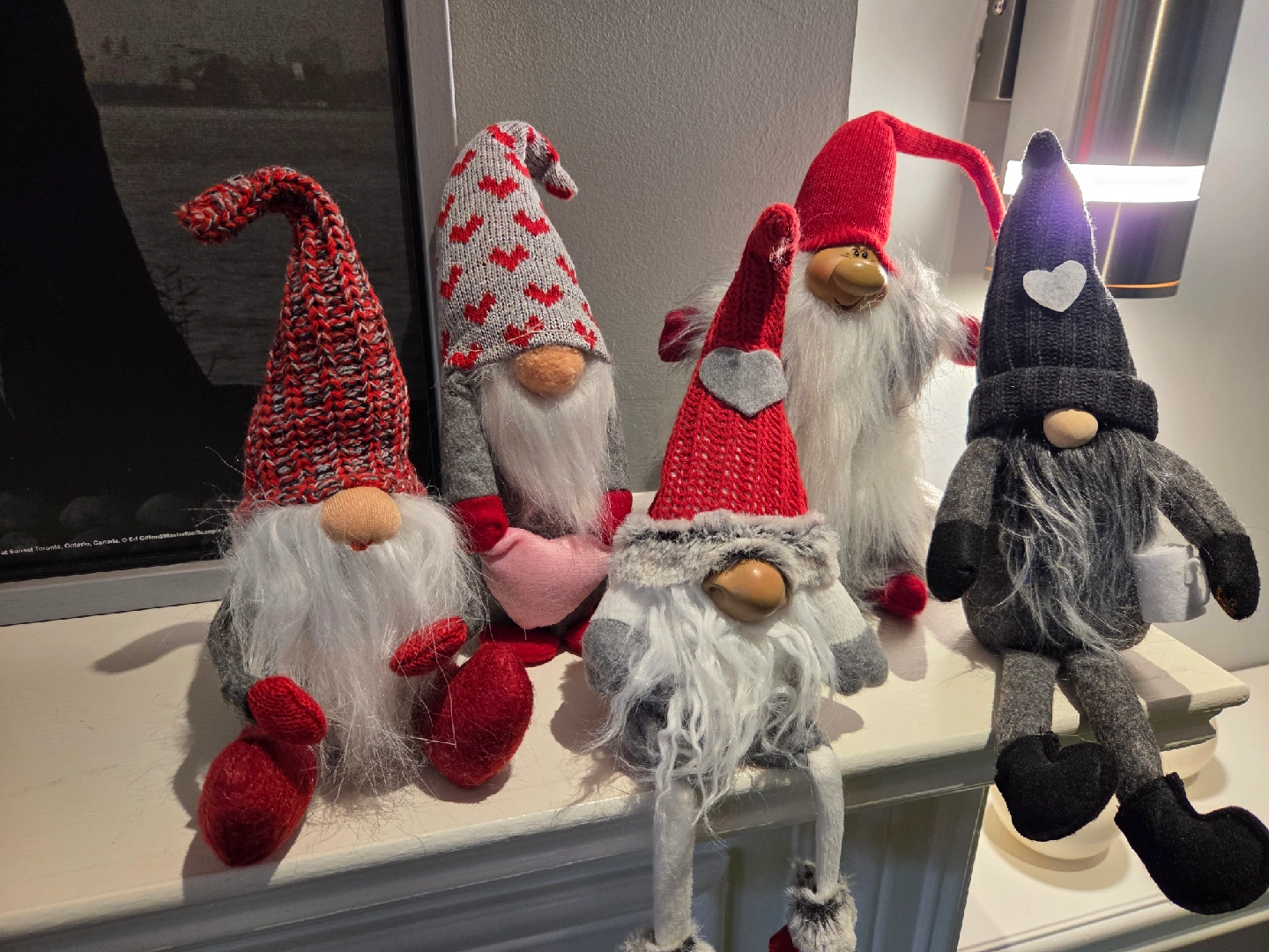 Selling a set of five adorable Christmas gnomes! They're in great condition and ready to add some holiday cheer to your home. Each gnome has a unique design and colour scheme, making them a charming addition to any festive display