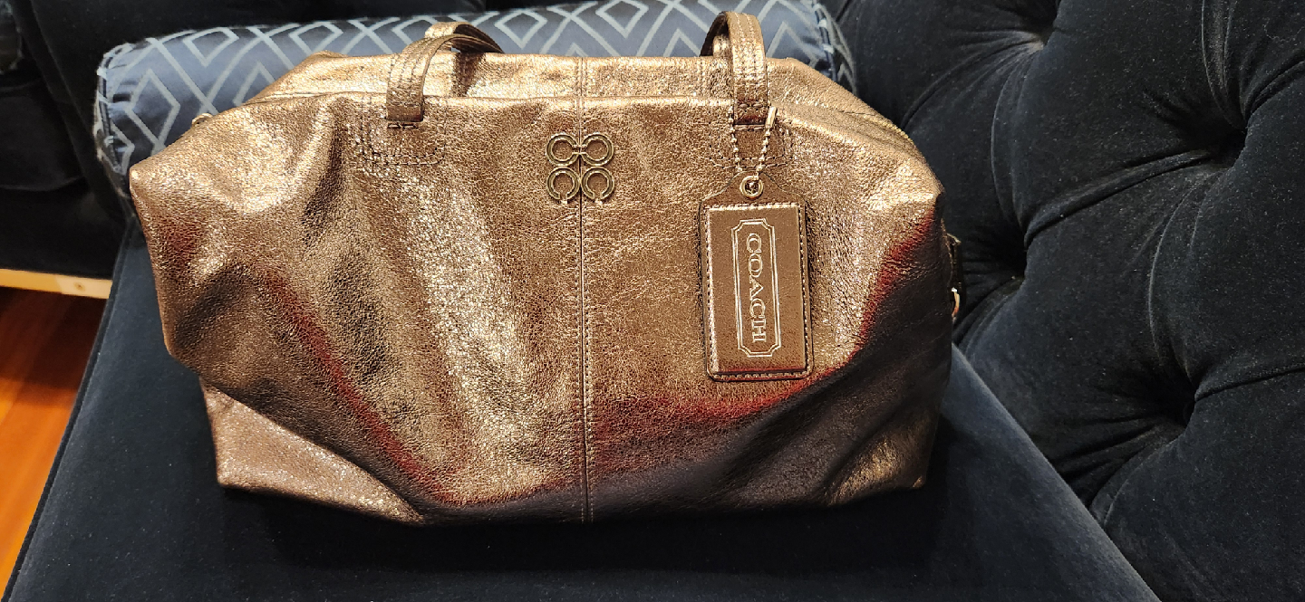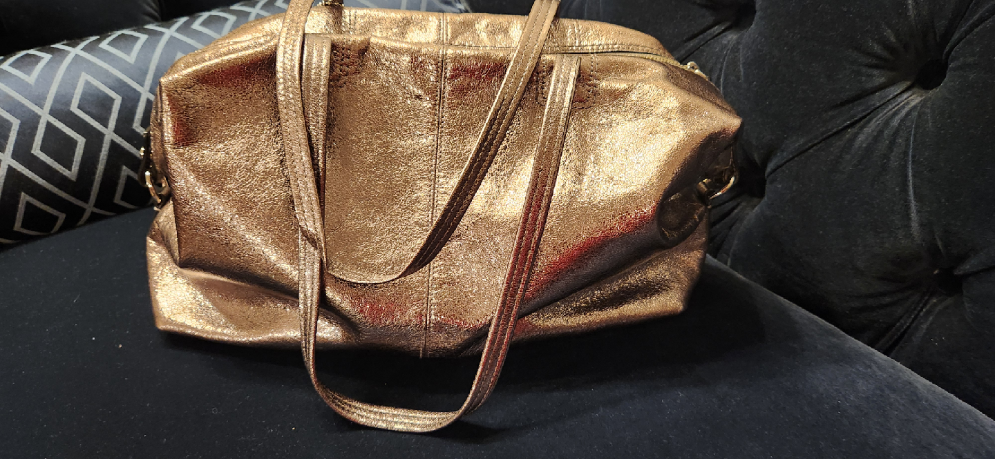 Selling a Coach tote bag in a lovely metallic bronze colour! It's a great size for everyday use. The bag is in good condition and ready for a new home. Can be worn as a tote or as a rectangular shoulder bag.