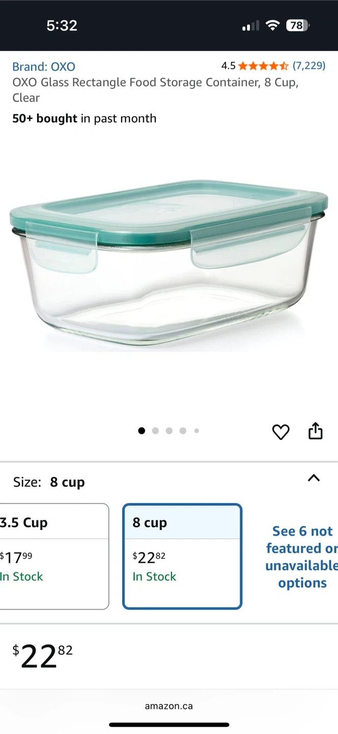 59Selling a set of 2 airtight glass containers. One is from OXO and the other is Snapware. Both are like-NEW condition, no damage, no scratches or no chip at all. They're perfect for meal prepping, storing food in the fridge or freezer, or preparing kimchi. Snapware Rectangular 6-cup Pyrex glass container is made in USA, with dimensions 23.2 x 18.1 x 7.3 cm OXO Rectangular 8-cup glass container has a dimension 23.9 x 16.3x 9.5 cm They are selling $60 in Amazon!