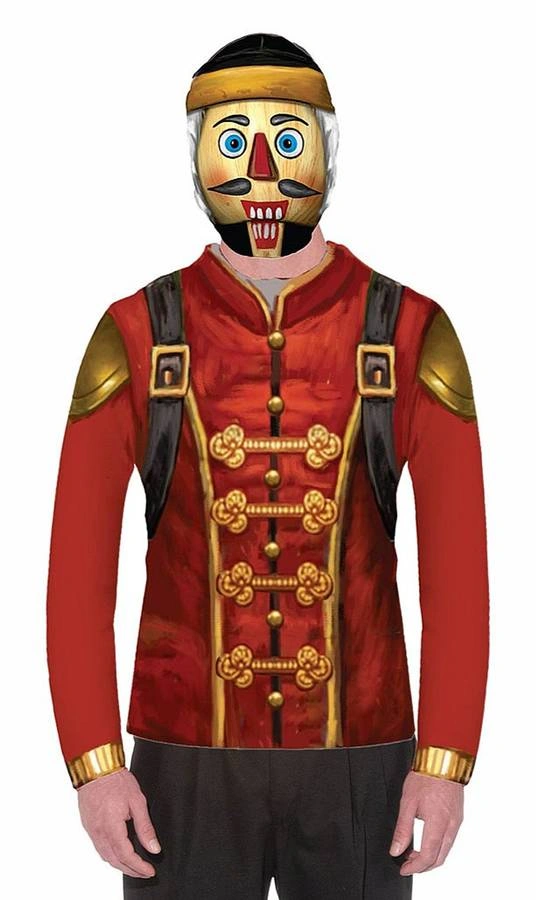 This is a nutcracker costume shirt and mask in size small. It's red with gold accents and looks like a nutcracker uniform. Perfect for a costume party or holiday event! Halloween