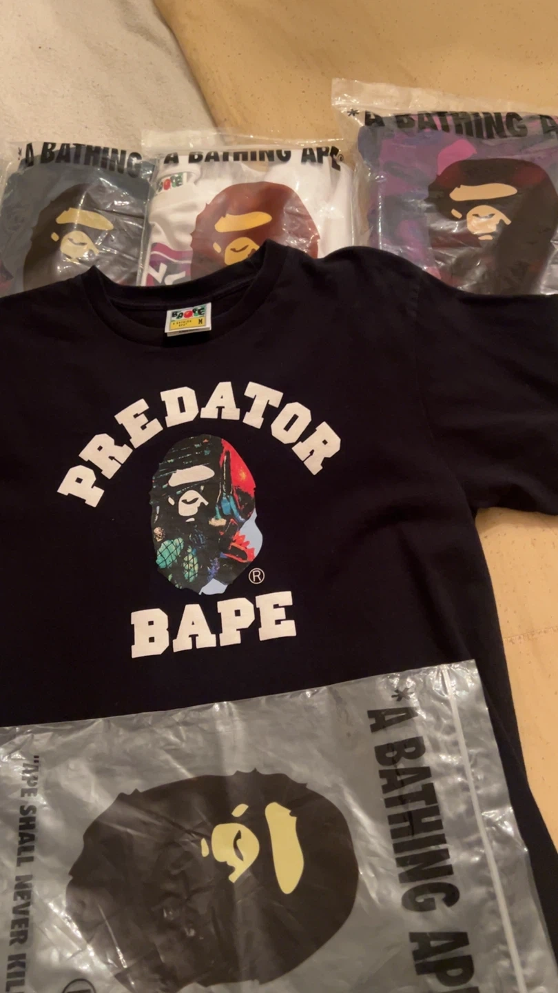 10Selling a BAPE Predator T-shirt in size medium. It's black with the iconic BAPE logo and the "Predator" design. Great for any BAPE fan!